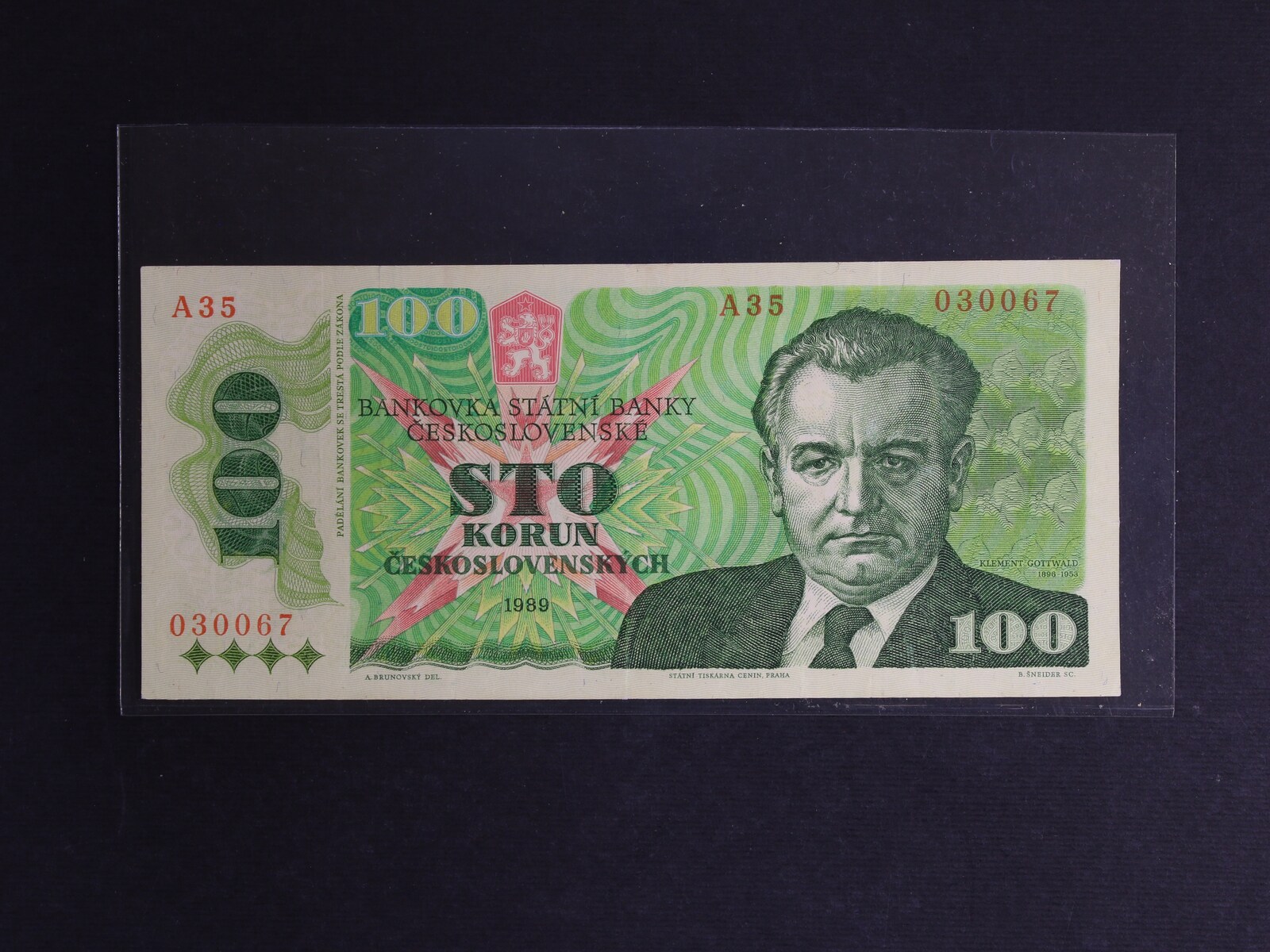 100 Kčs 1989 série A 35, Ba. 106, Pi. 97, vzácně se vyskytující vysoká série