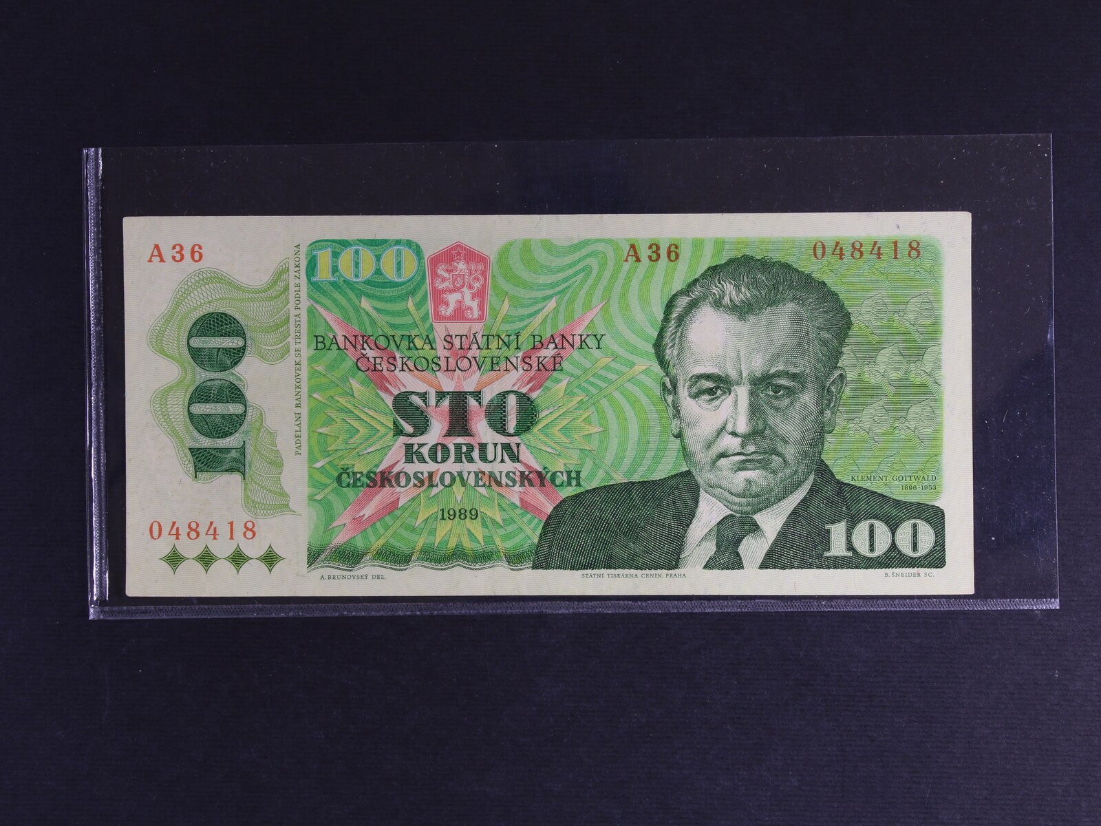 100 Kčs 1989 série A 36, Ba. 106, Pi. 97, vzácně se vyskytující vysoká série