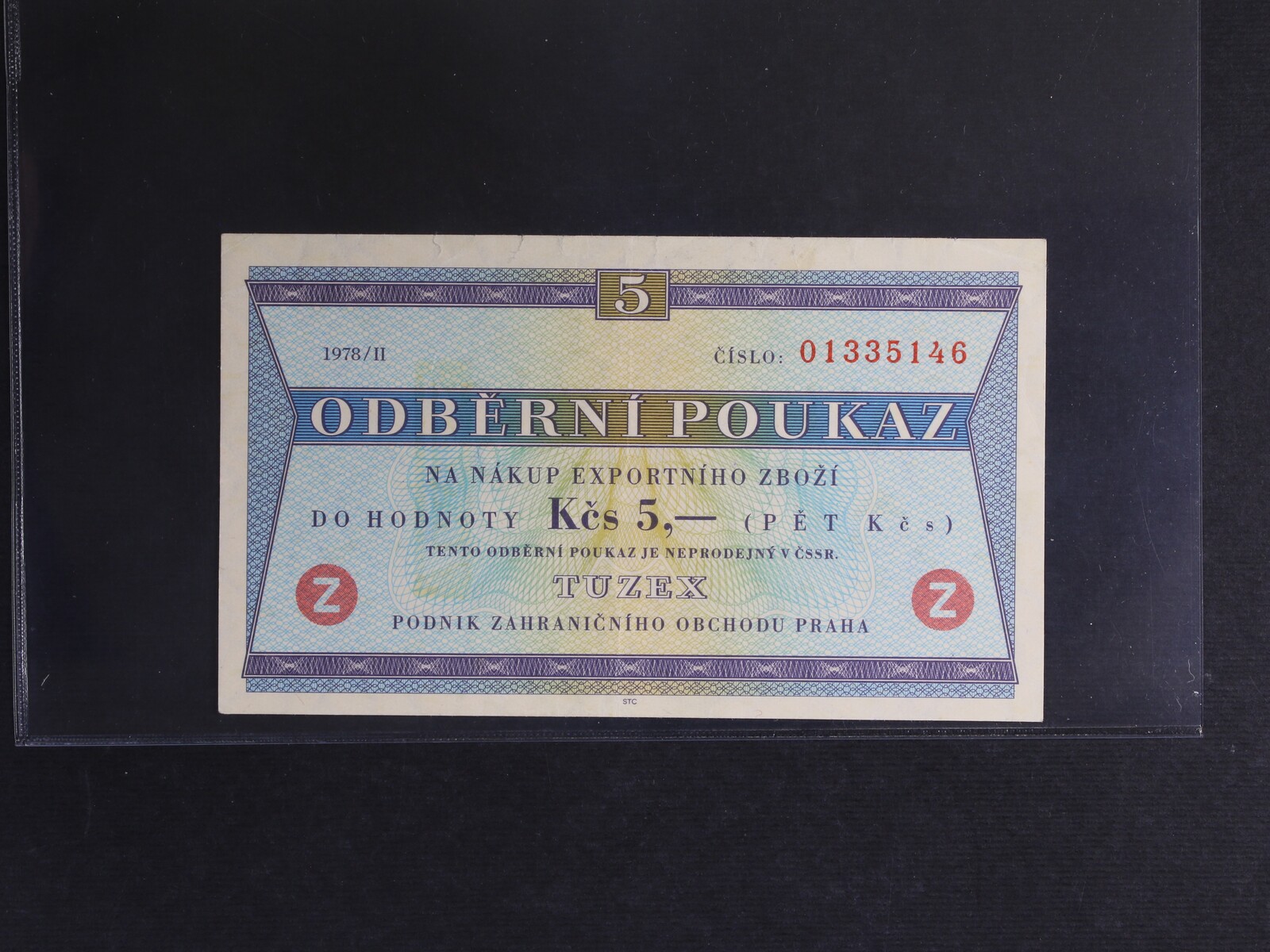 Tuzex, 5 TKčs s datem 1978/II "Z", K.Š.K. 49/VII/b, natrž.