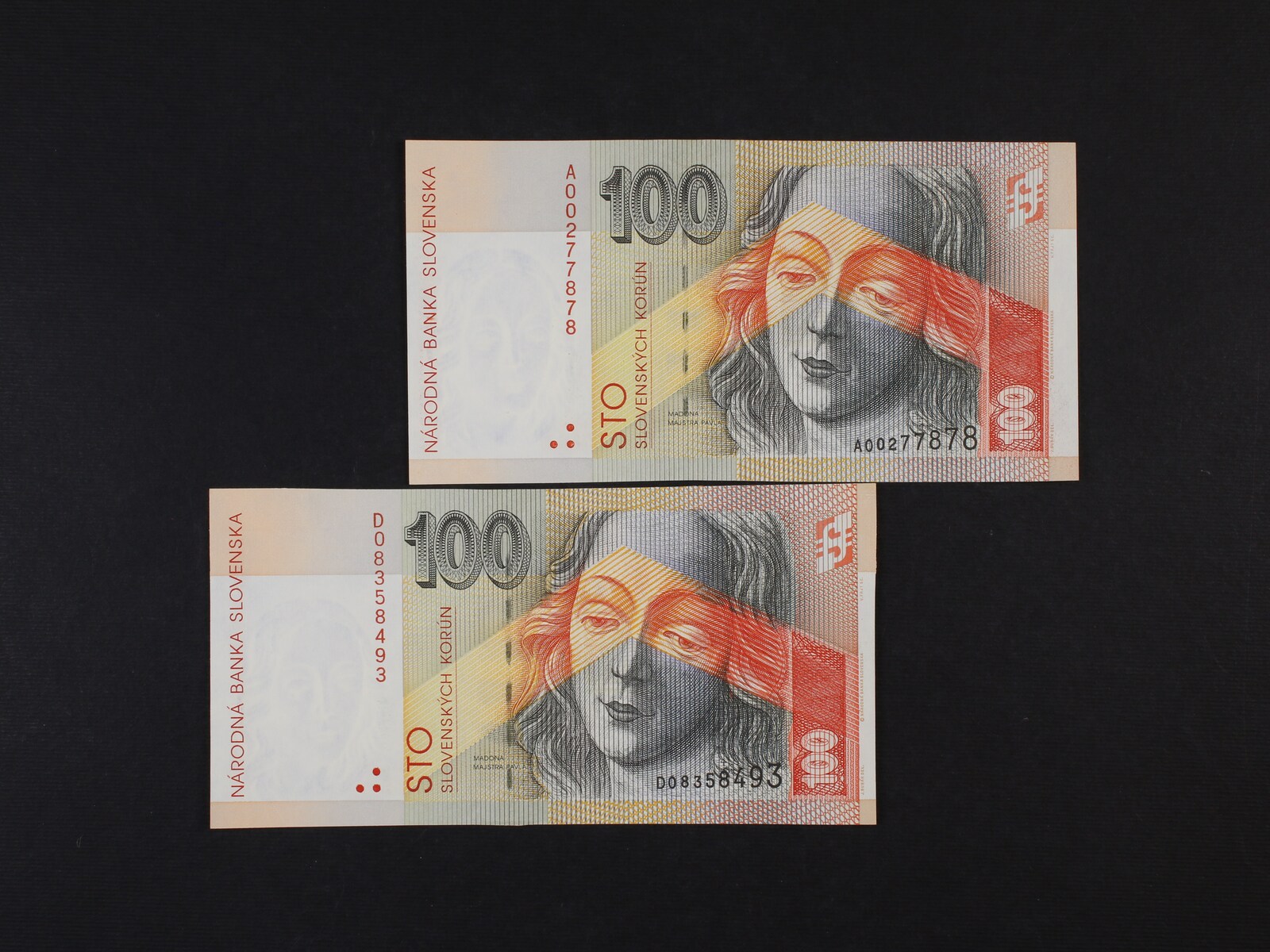 100 Sk 1.9.1993 serie A, D, Ba. SK 8a, Pi. 22, 2 kusy