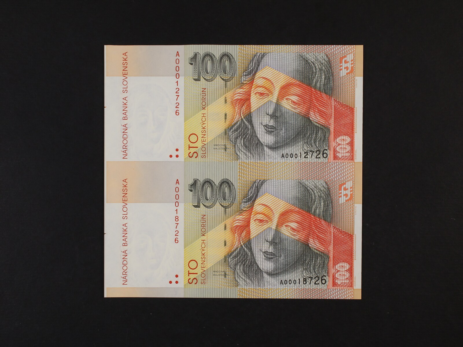 100 Sk 1.9.1993 série A ve svislé nerozstřižené 2-pásce, Ba. SK 8a, Pi. 22a
