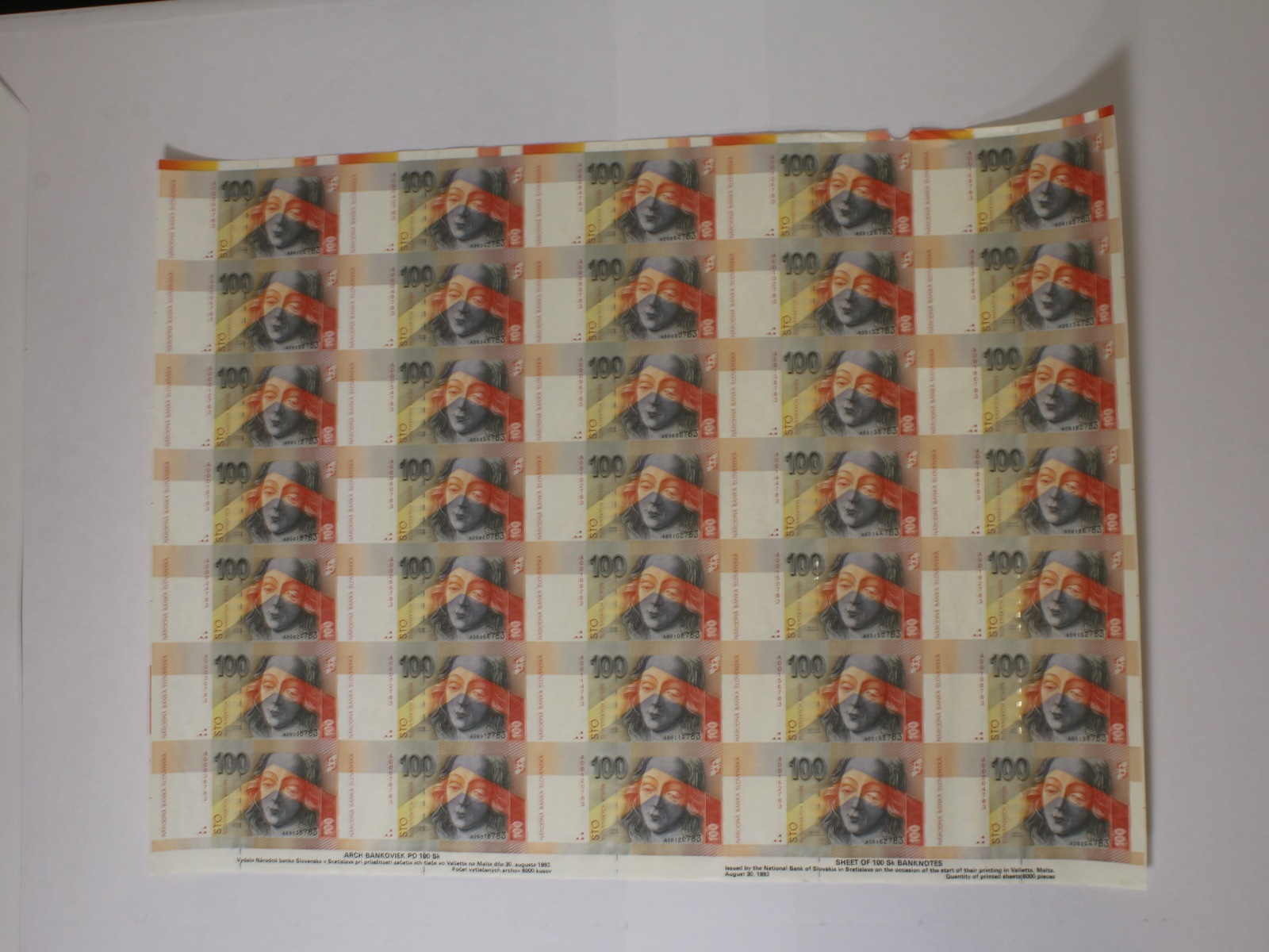 100 Sk 1.9.1993 série A v kompletním 35-ti kusovém archu, Ba. SK 8a, Pi. 22