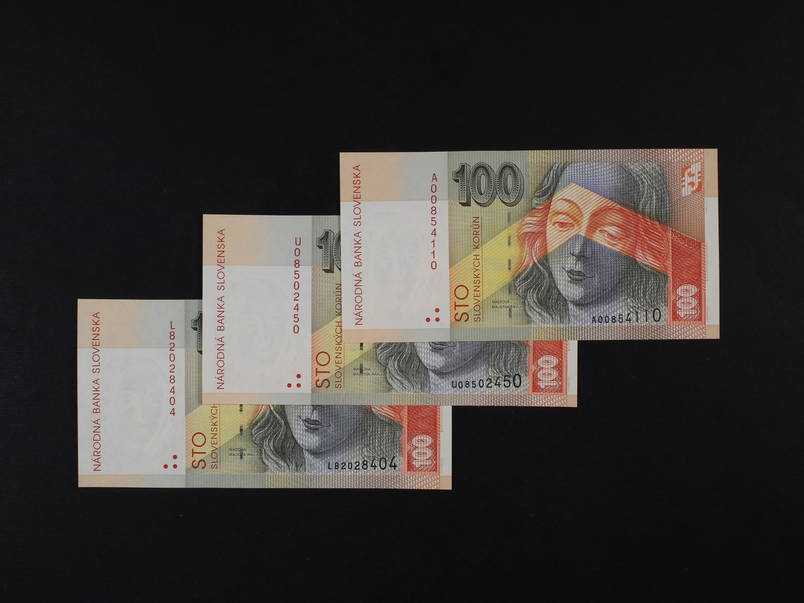 100 Sk 10.10.2001 série A, L, U, Ba. SK 29, Pi. 25d, 3 kusy