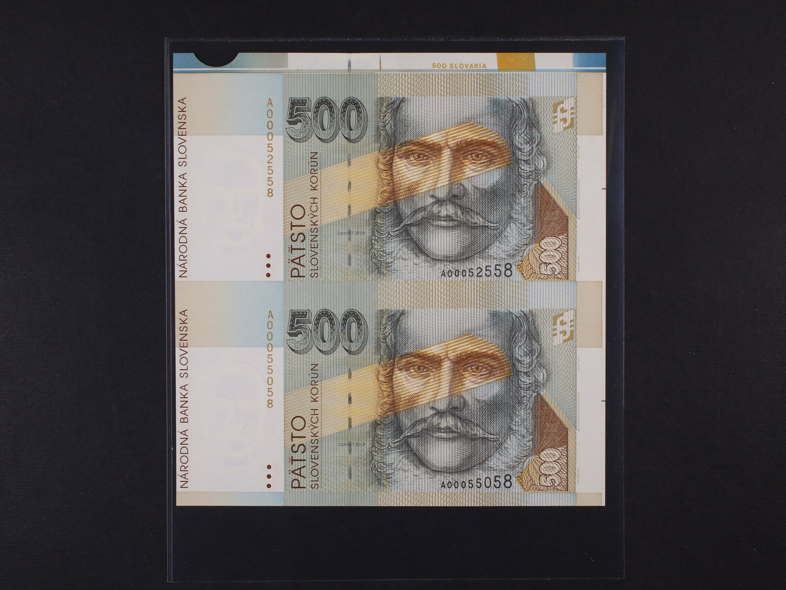 500 Sk 1.10.1993 série A ve svislé nerozstřižené 2-pásce, Ba. SK 9a, Pi. 23a