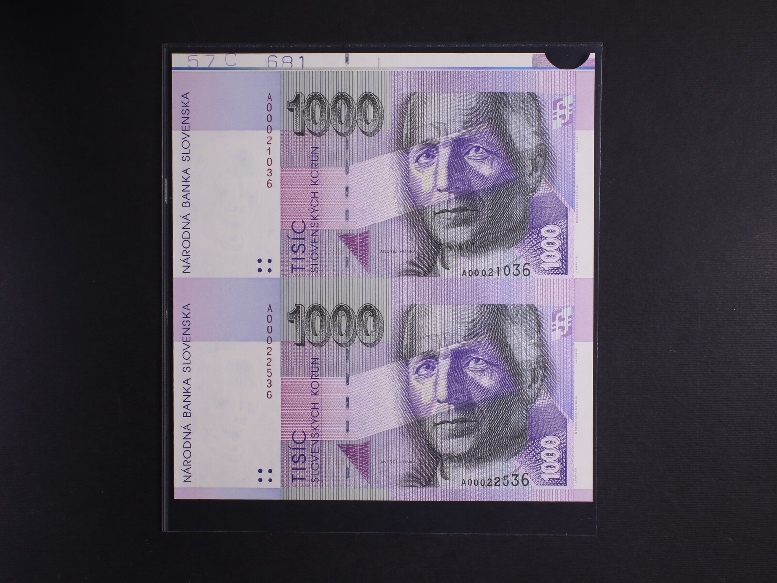 1000 Sk 1.10.1993 série A ve svislé nerozstřižené dvoupásce, Ba. SK 10a, Pi. 24