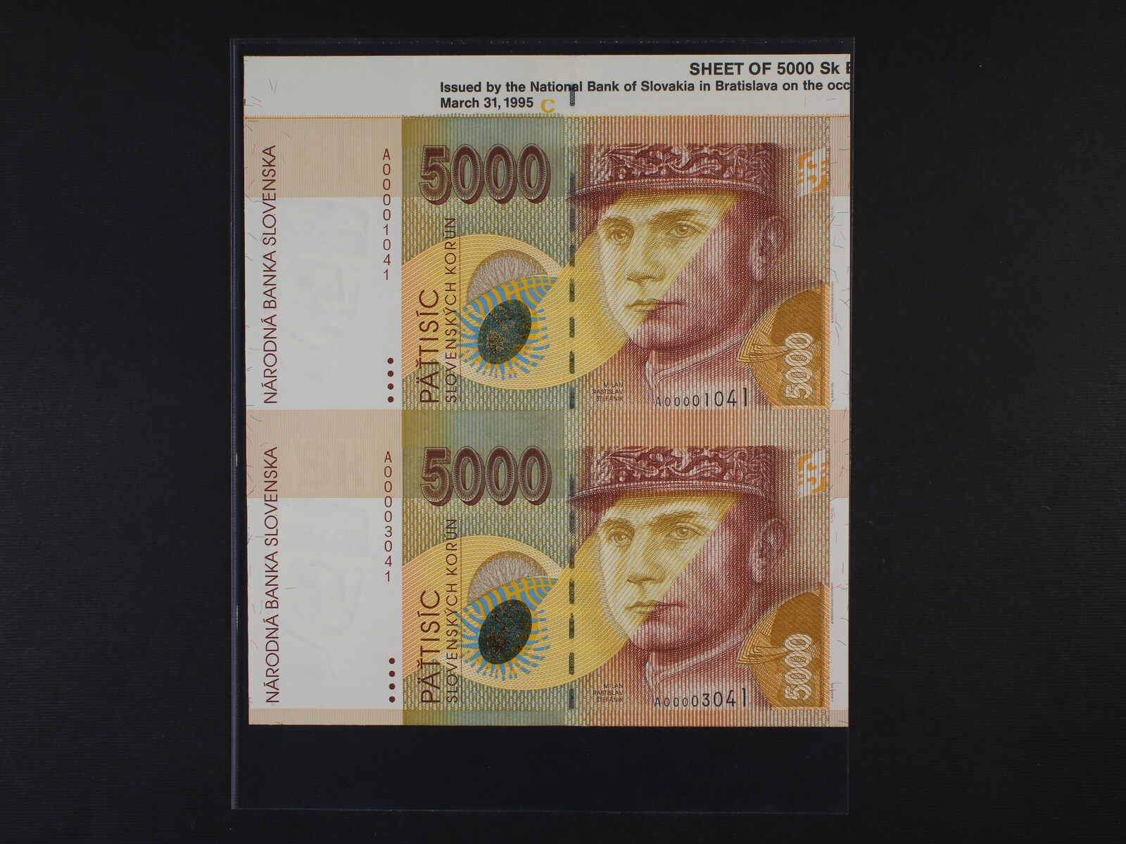5000 Sk 3.4.1995 série A ve svislé nrozstřižené dvoupásce, Ba. SK11a