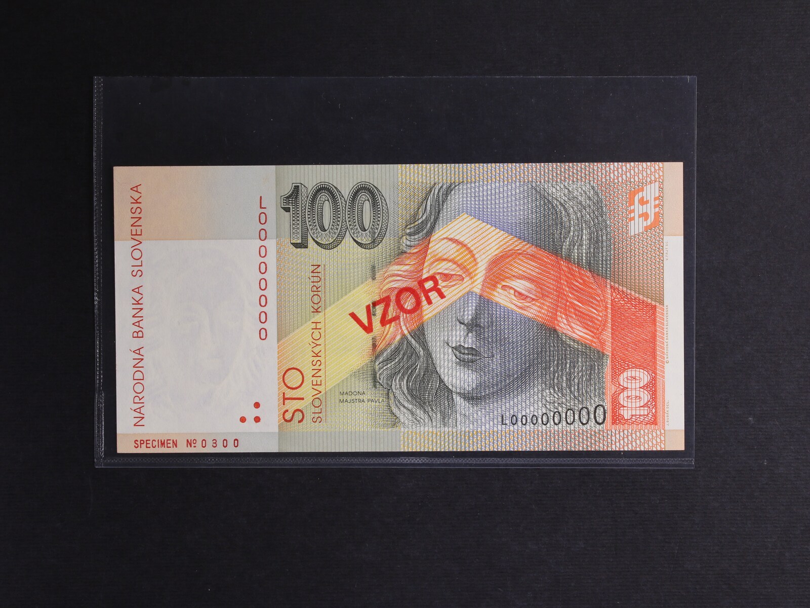100 Sk 10.10.2001 série L anulát s přetiskem VZOR č. 0300, Ba. SK 29, Pi. 25ds, He. SK 37V1