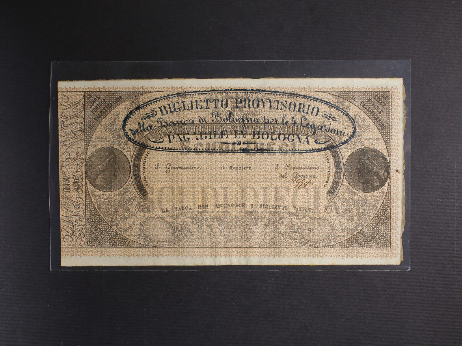 Banca Pontifica per le 4 Legazioni, 10 Scudi 1855 formulář, Pi. S671r