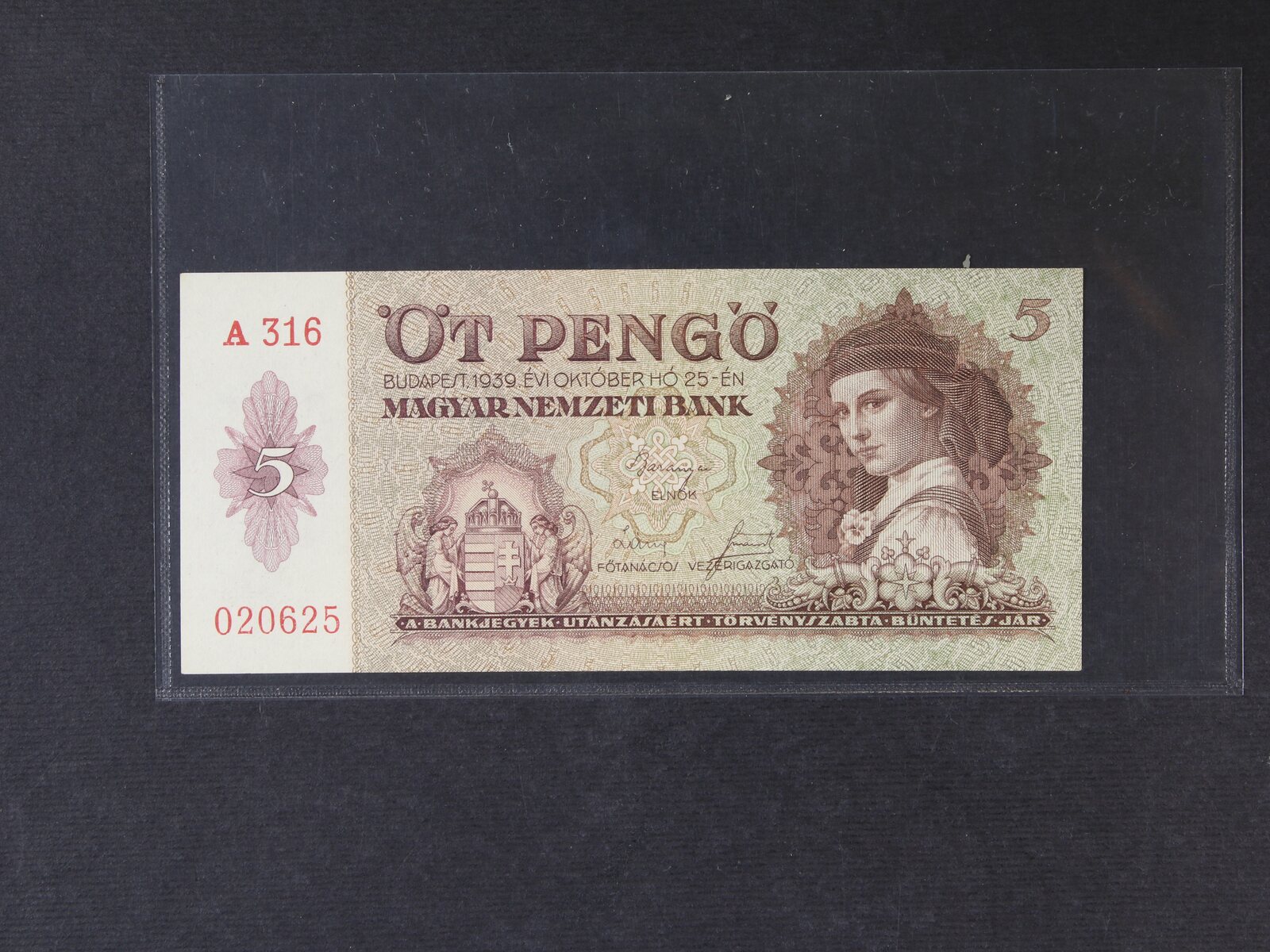5 Pengö 25.10.1939 série A 316, platná na ČS území, Pi. 106, Ba. H4