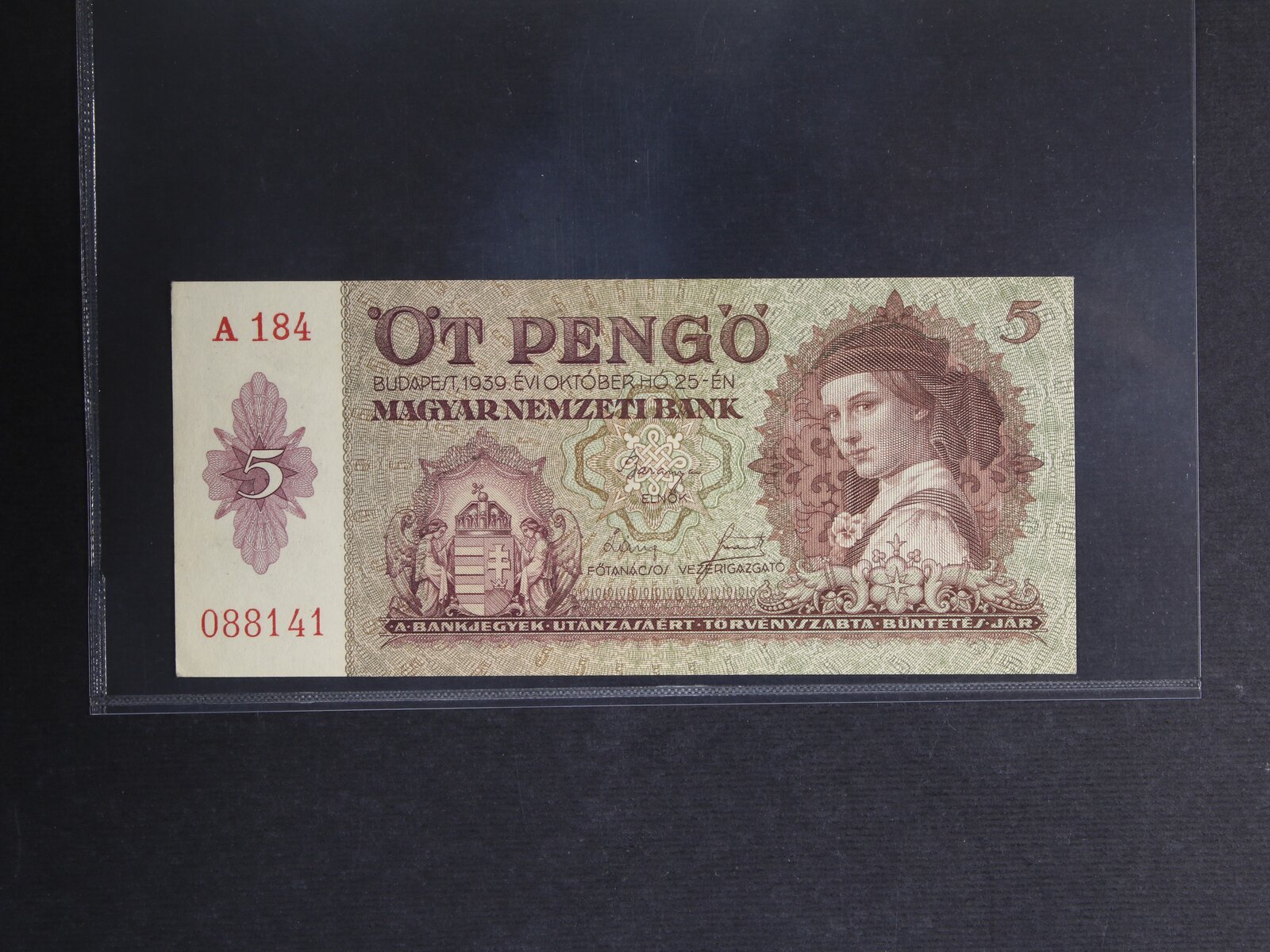 5 Pengö 25.10.1939 série A 184, platná na ČS území, Pi. 106, Ba. H4
