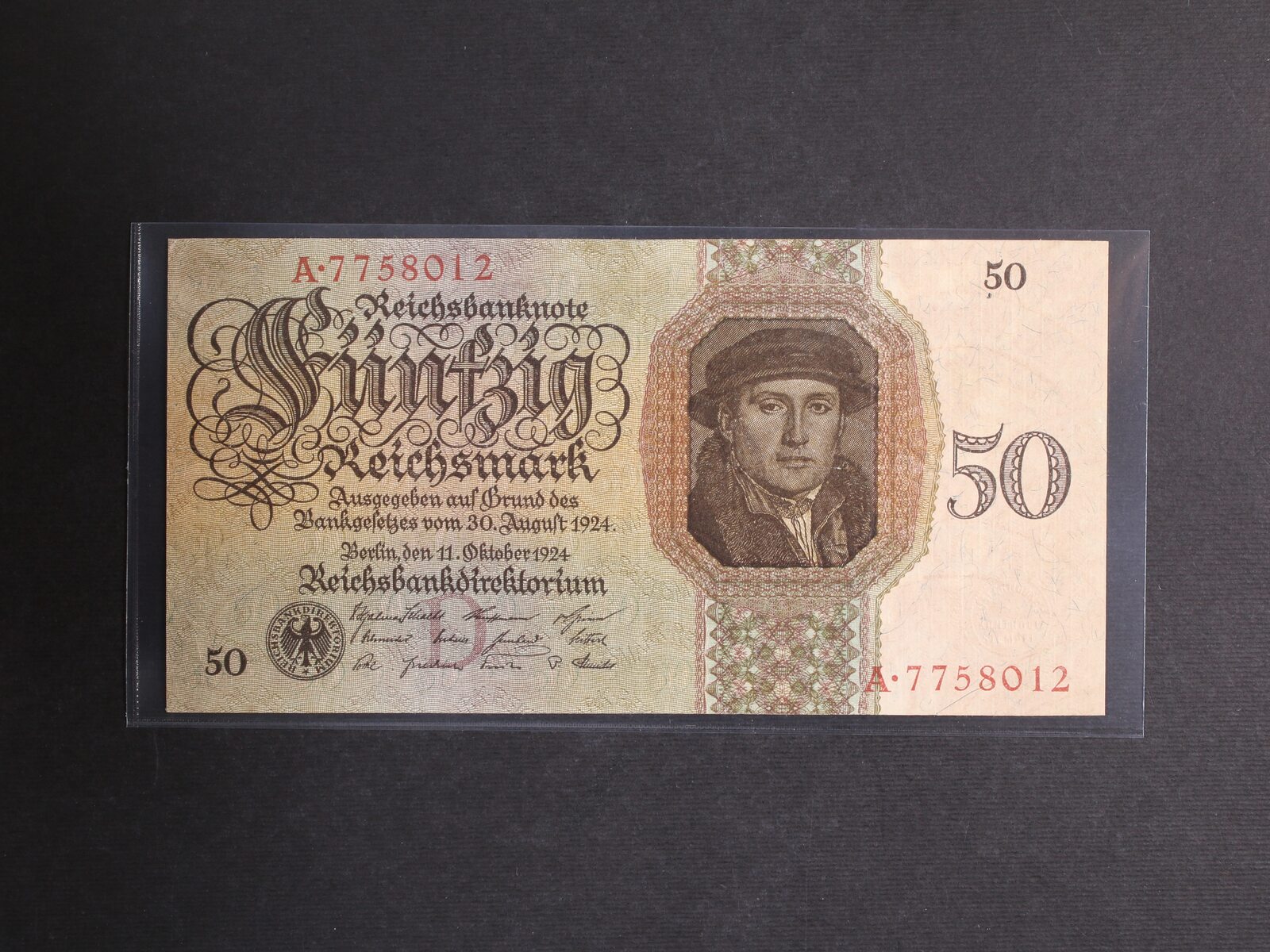 50 Rm 11.10.1924 série A, podtiskové písmeno D, platná na ČS území, Ro. 170 , Pi. 177, Ba. D 5, Grab. DEU-176a