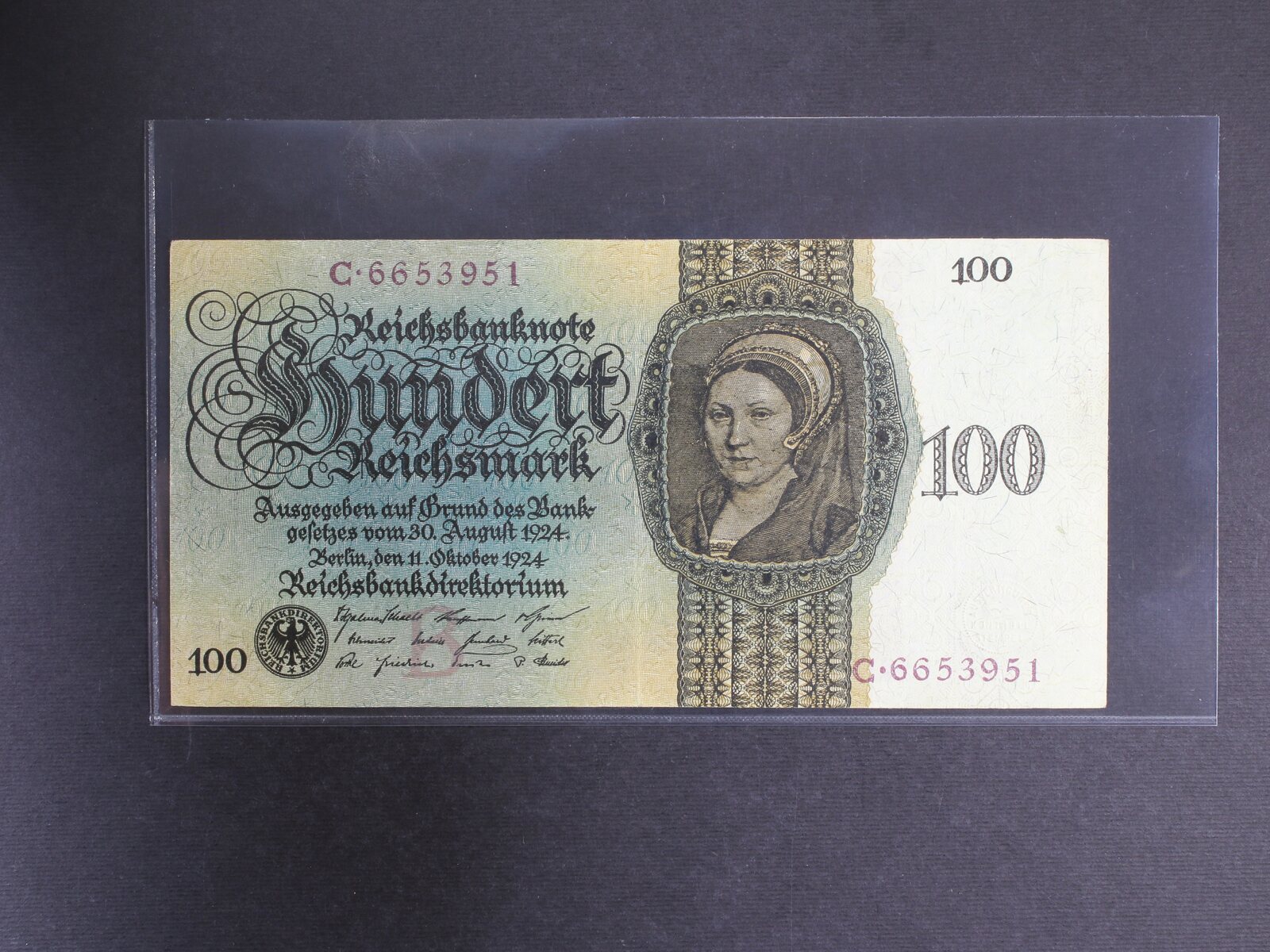 100 Rm 11.10.1924 série C, podtiskové písmeno B, platná na ČS území, Ro. 171a , Pi. 178, Ba. D7, Grab. DEU-177a