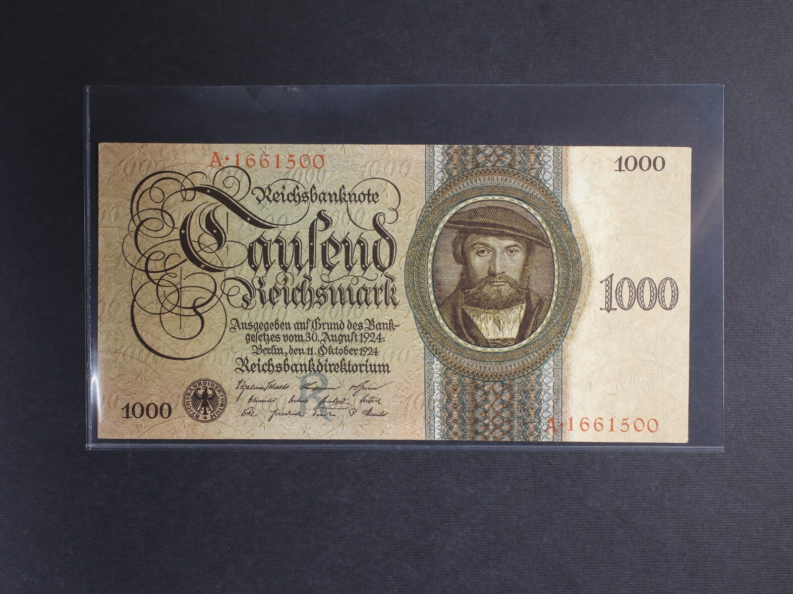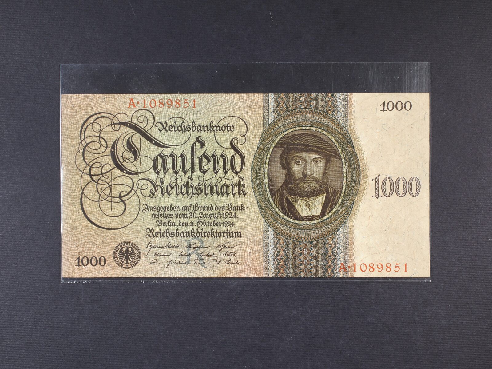 1000 Rm 11.10.1924 série A, podtisk. písmeno R, platná na ČS území, Ro. 172a , Pi. 179, Ba. D9, Grab. DEU-178a