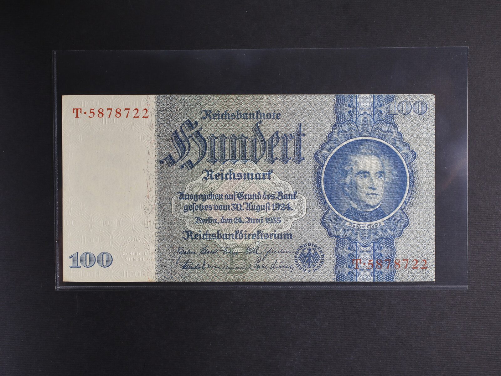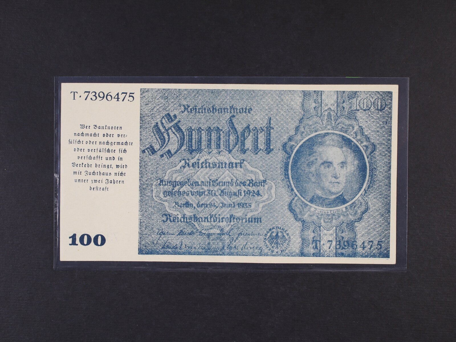 100 Rm 24.6.1935 série T, podtiskové písmeno B, platná na ČS území, Ba. D8b, Ro. 176a, Pi. 183a, Grab. DEU-211a