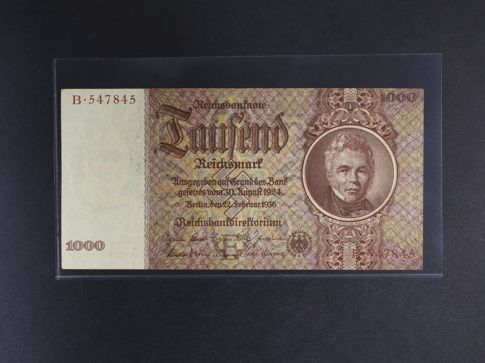 1000 Rm 22.2.1936 série B, podtiskové písmeno E, hnědý číslovač, platná na ČS území, Ro. 177 , Ba. D10