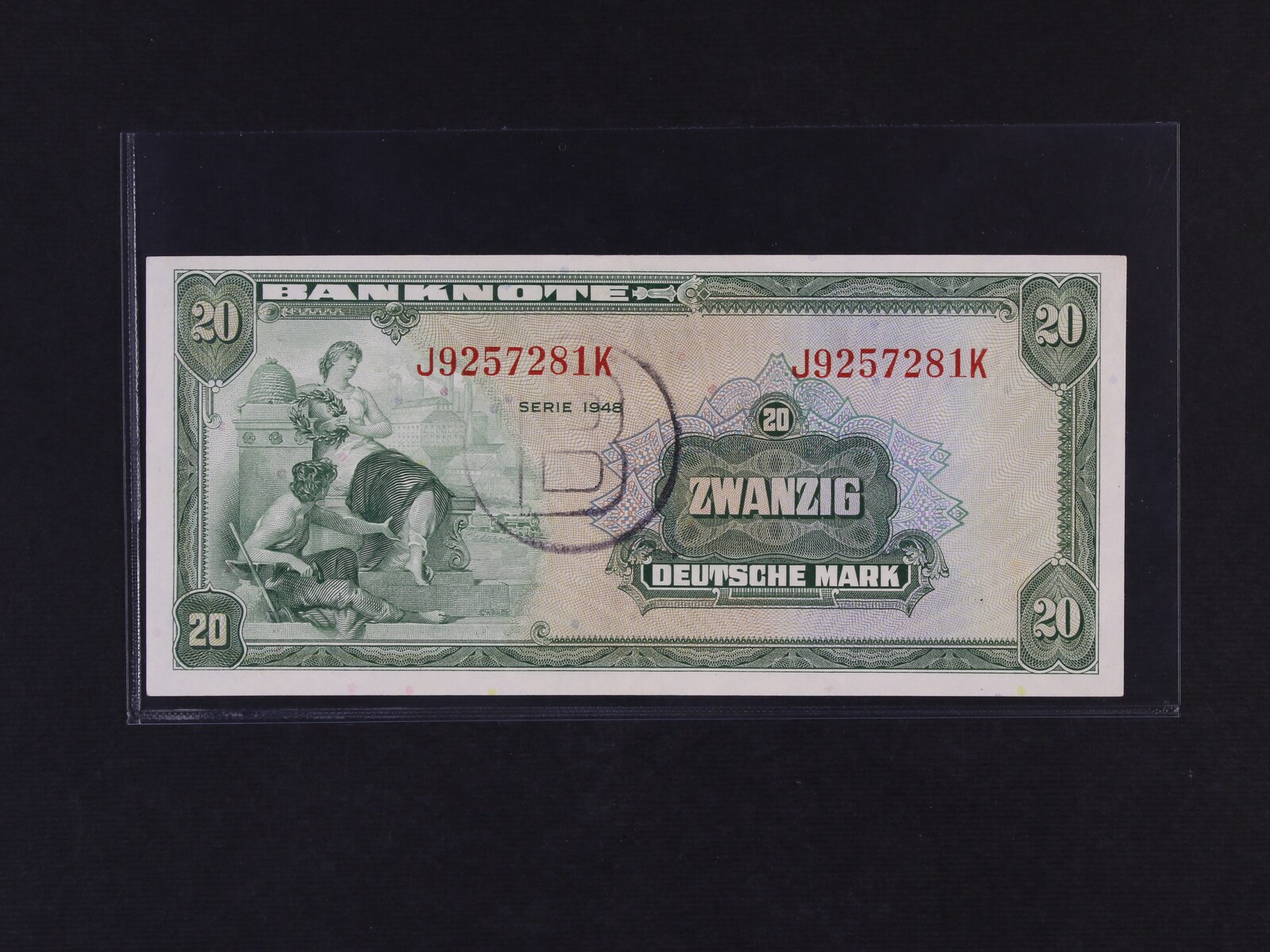 20 DM 1948 série J/K s raz. B vydání pro Berlín, Ro. 239a, Grab. WBZ-18a