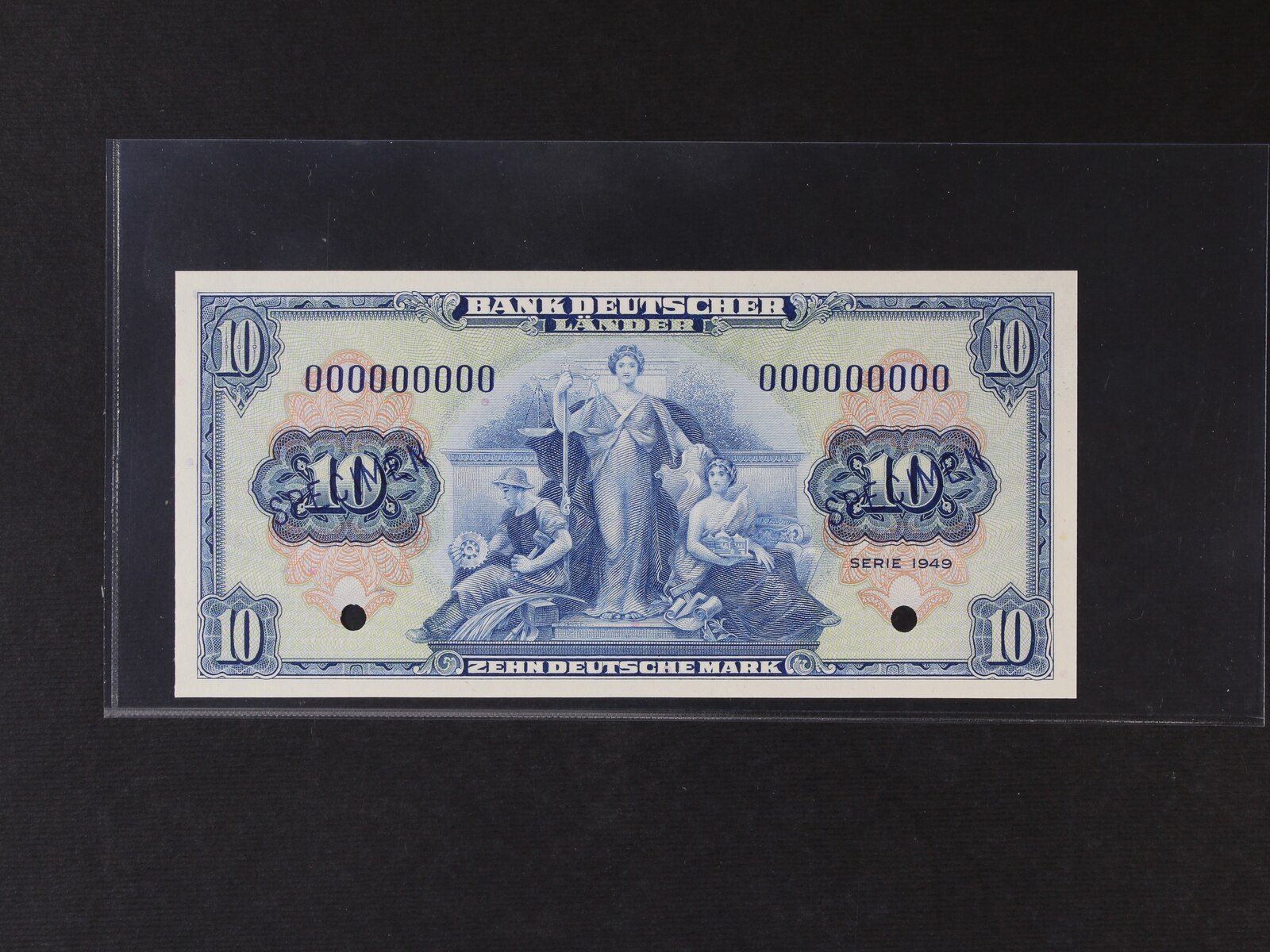 10 DM 22.8.1949 anulát s přetiskem SPECIMEN, 2x perf. otvor, Ro. 258M1, Pi. 16s, Grab. BRD-4 M1