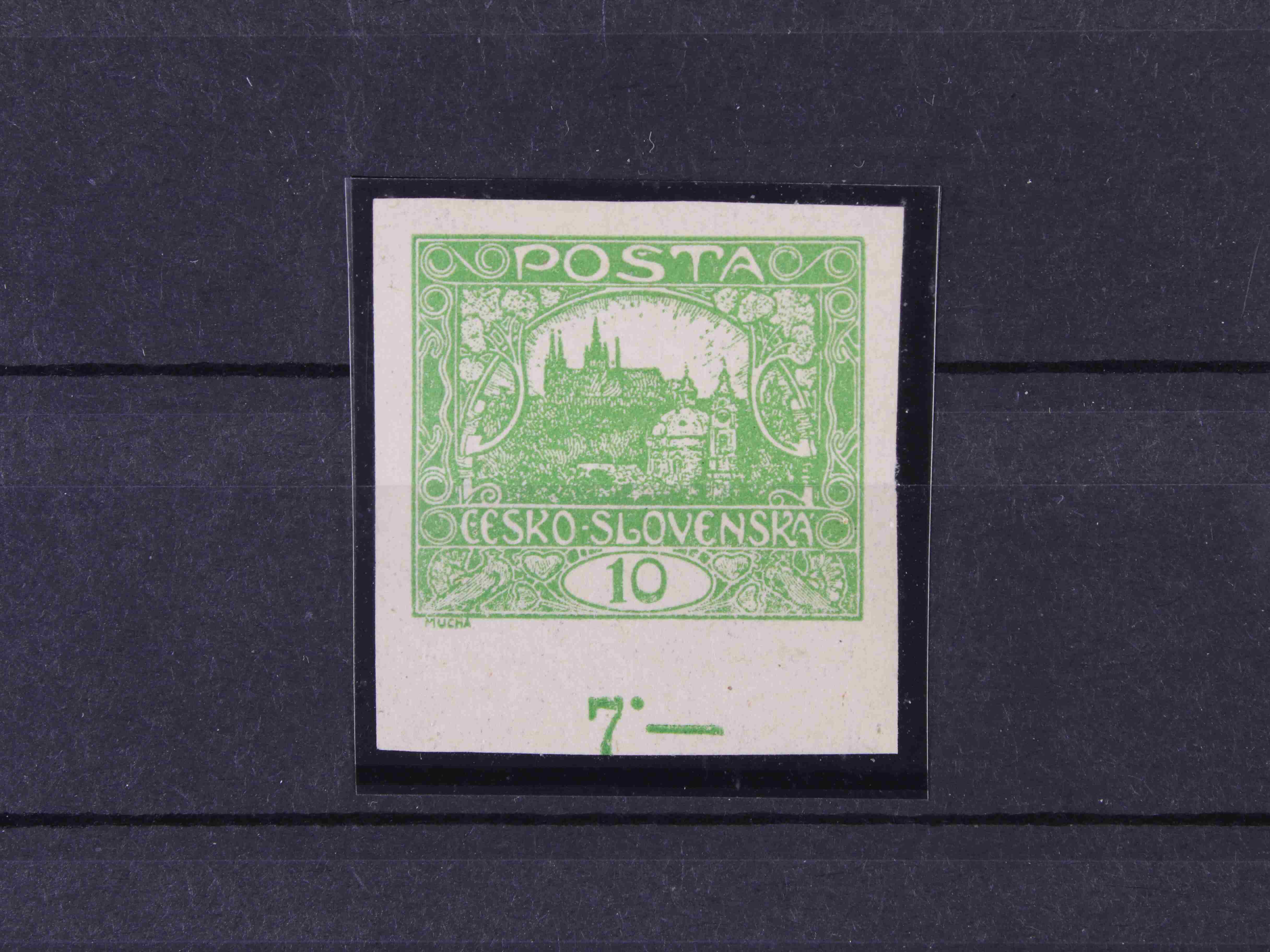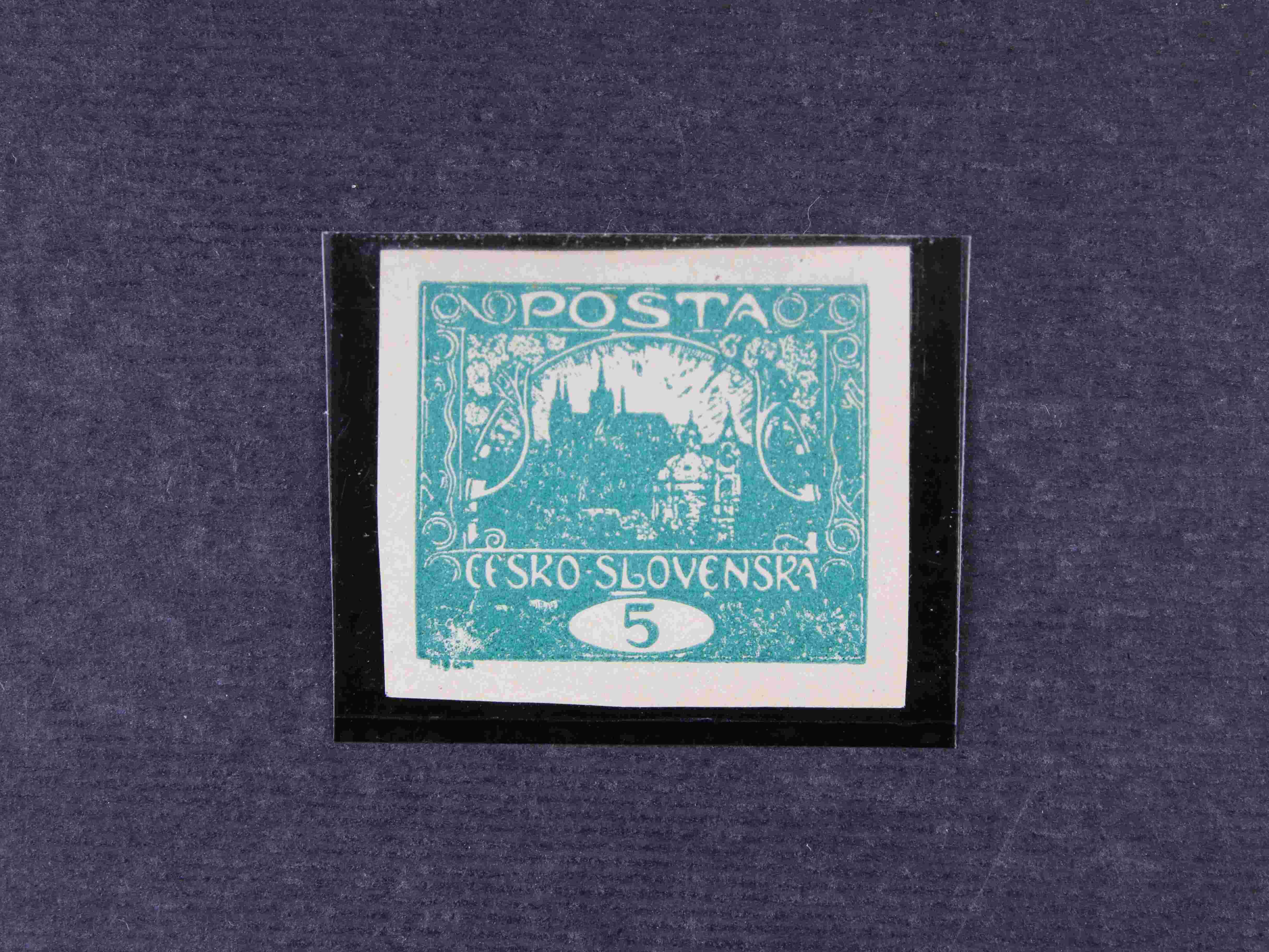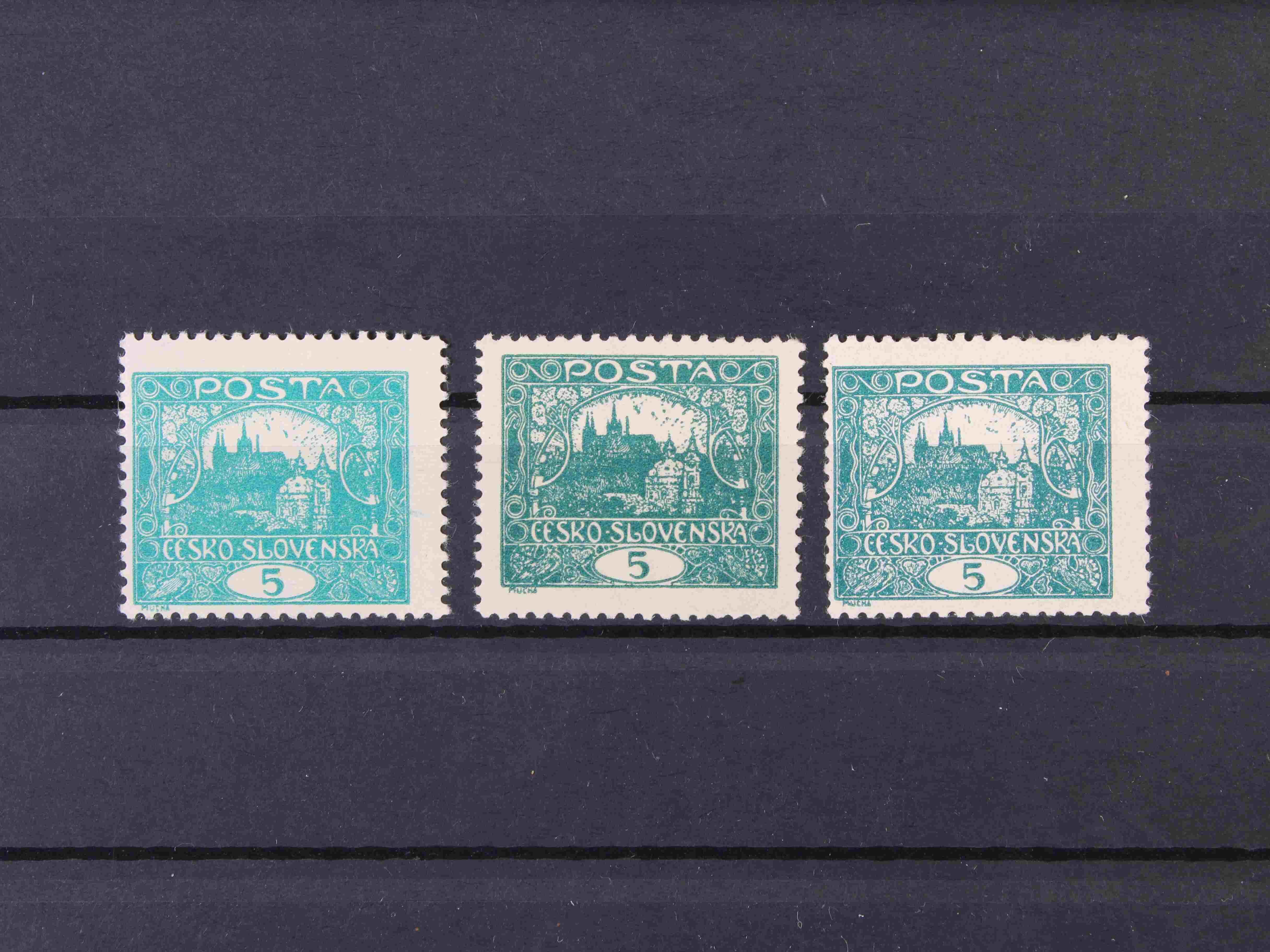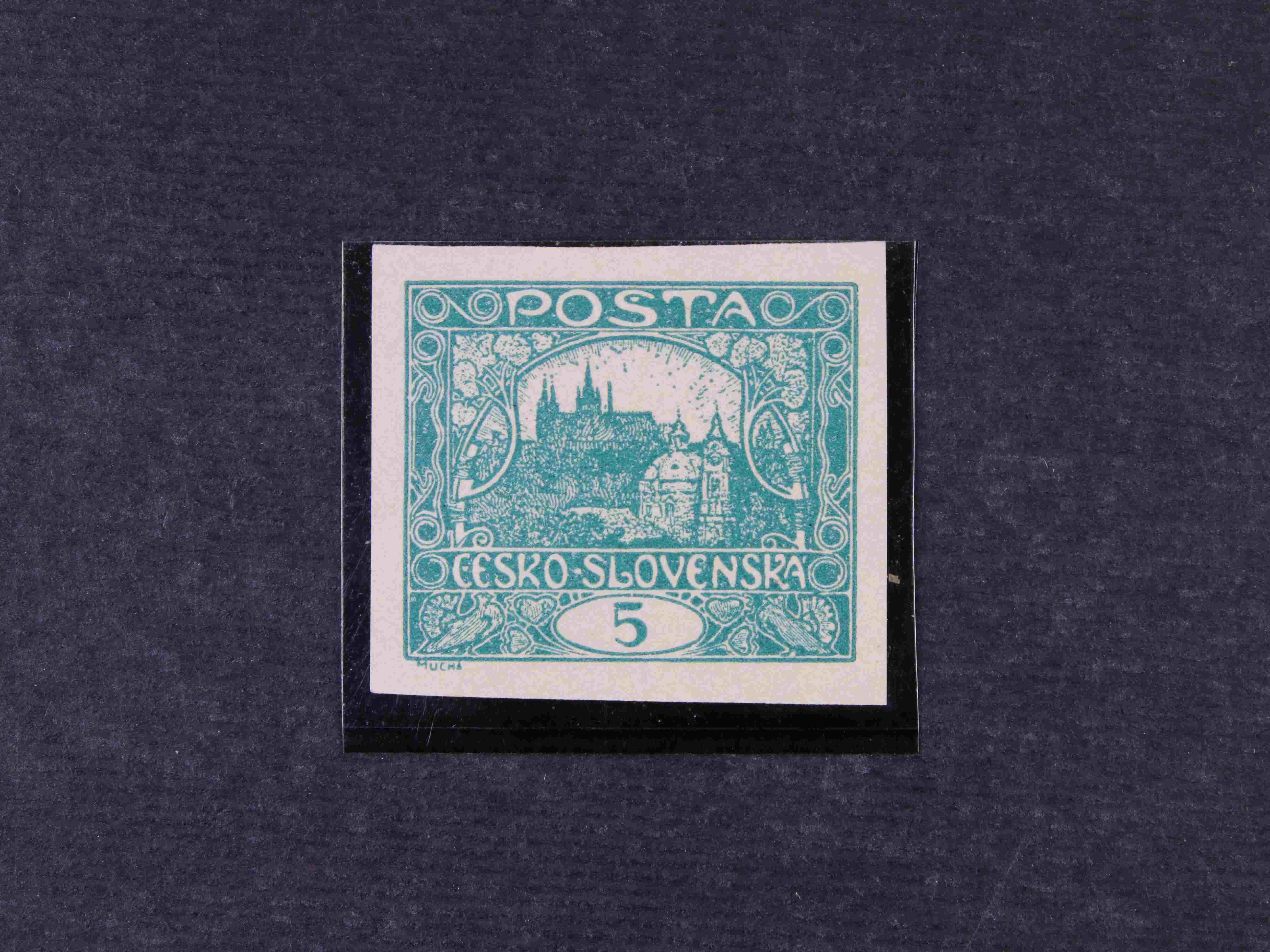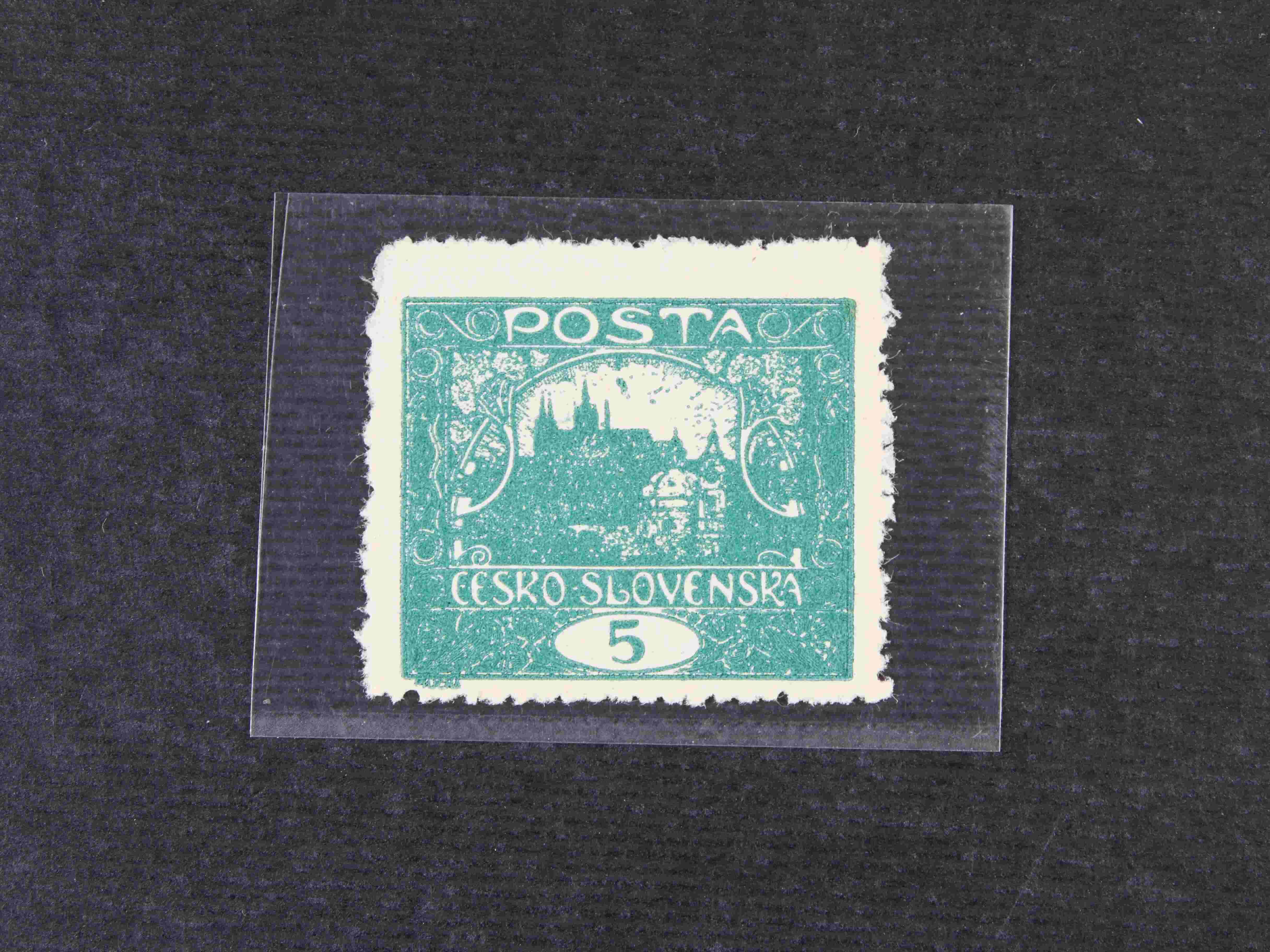 48 zn. č. 4 Ba 5h tmavě modrozelená - levá horní roh. třípáska s posunutou a dvojtou šikmou perforací na horním okraji 600
