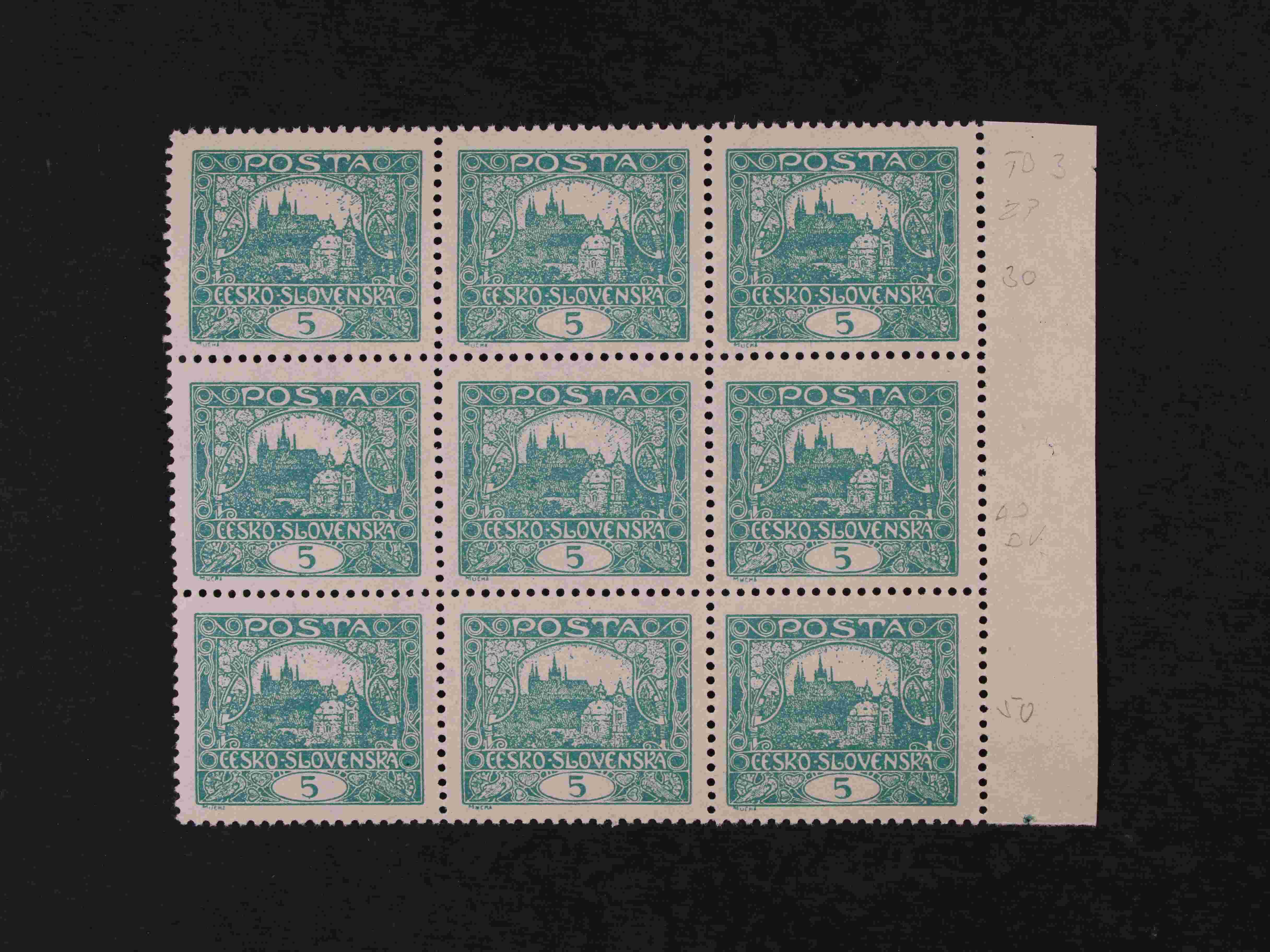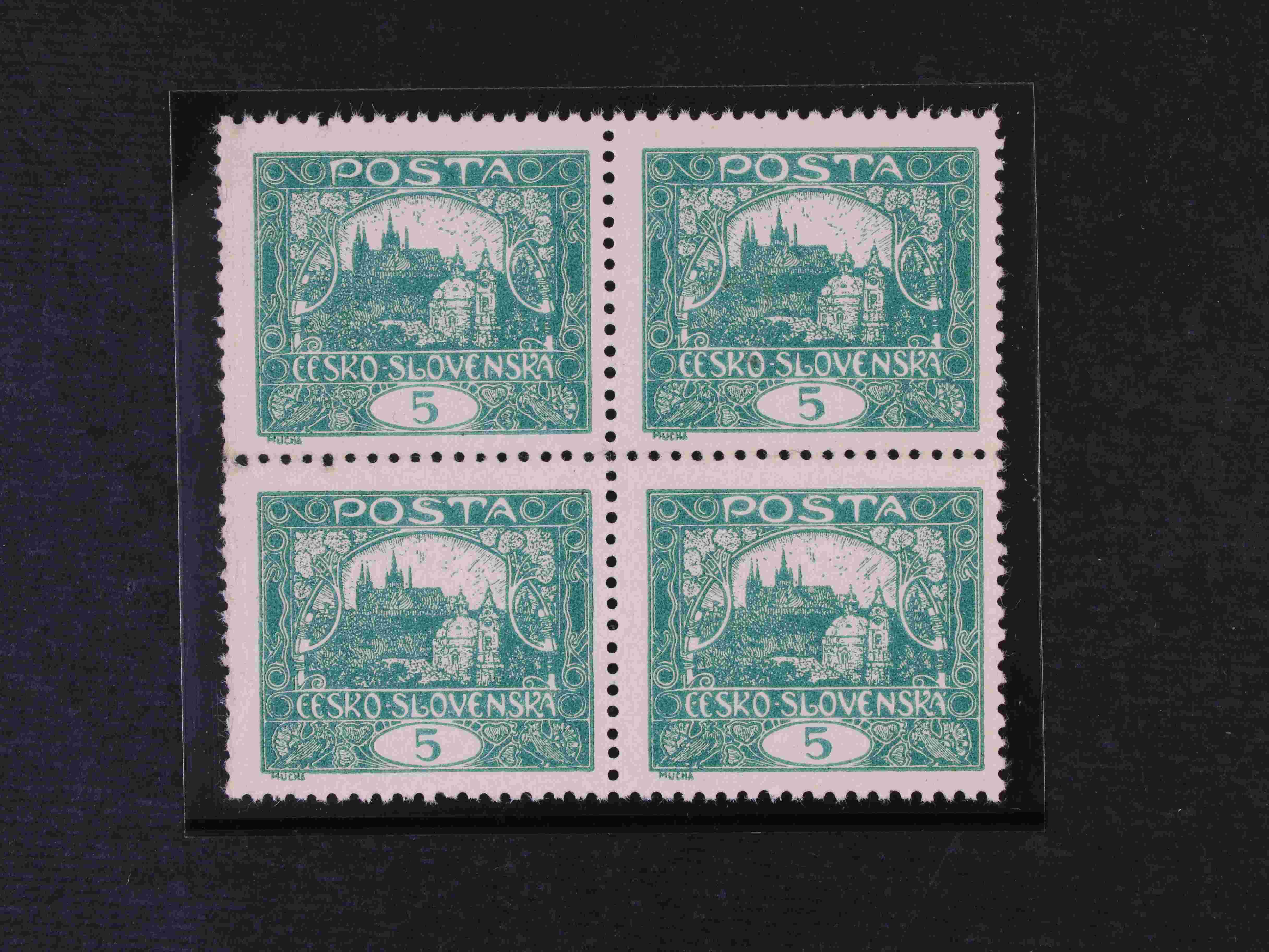 49 zn. č. 4 Bb tmavě zelená ve čtyřbloku, TD 7 - vzácná, kat. cenu neuvádí, zk. Vrba 2600
