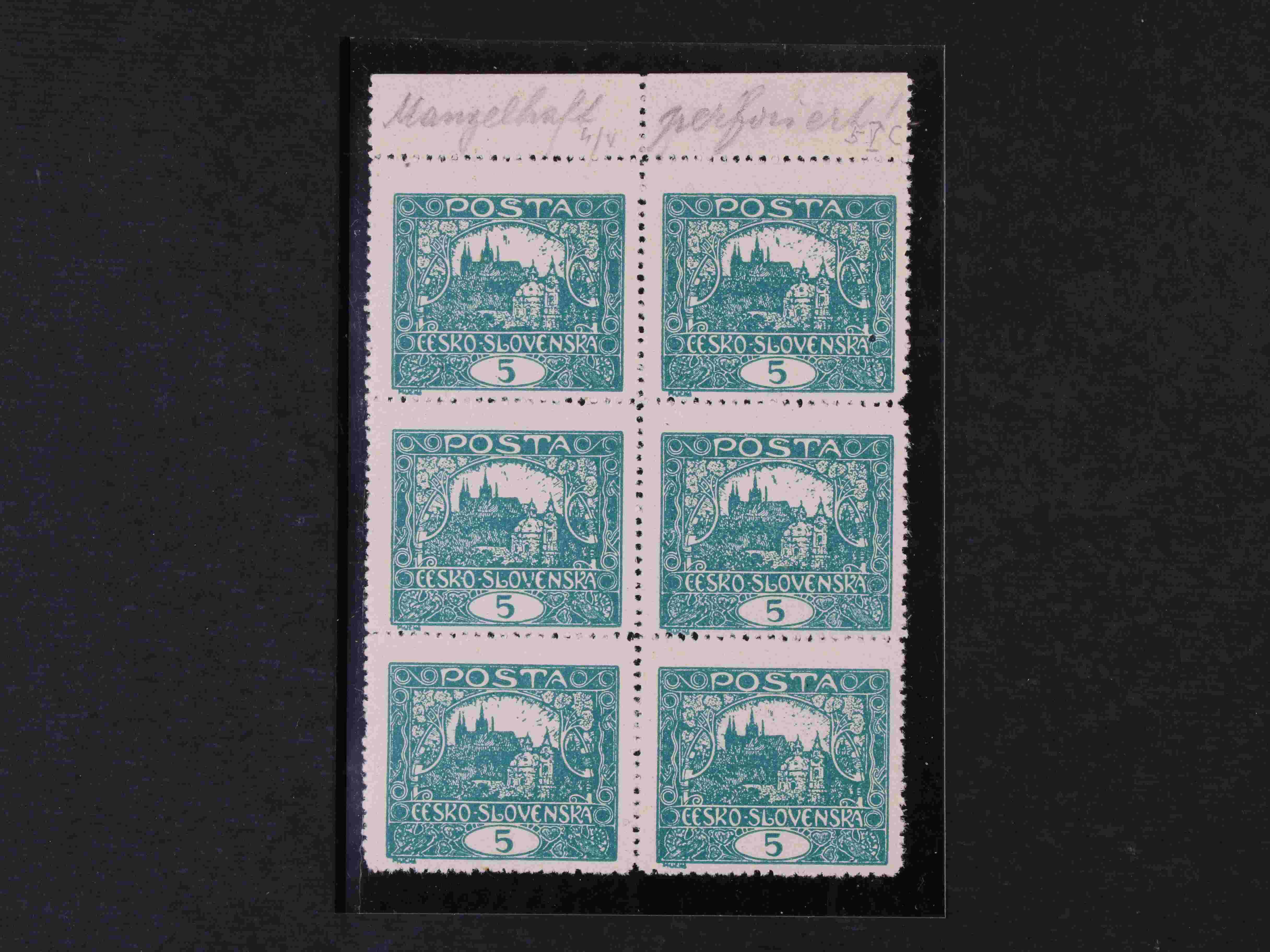 50 zn. č. 4 Cb tmavě zelená v 6ti-bloku s horním okrajem, TD 5, zk. Vrba 1800
