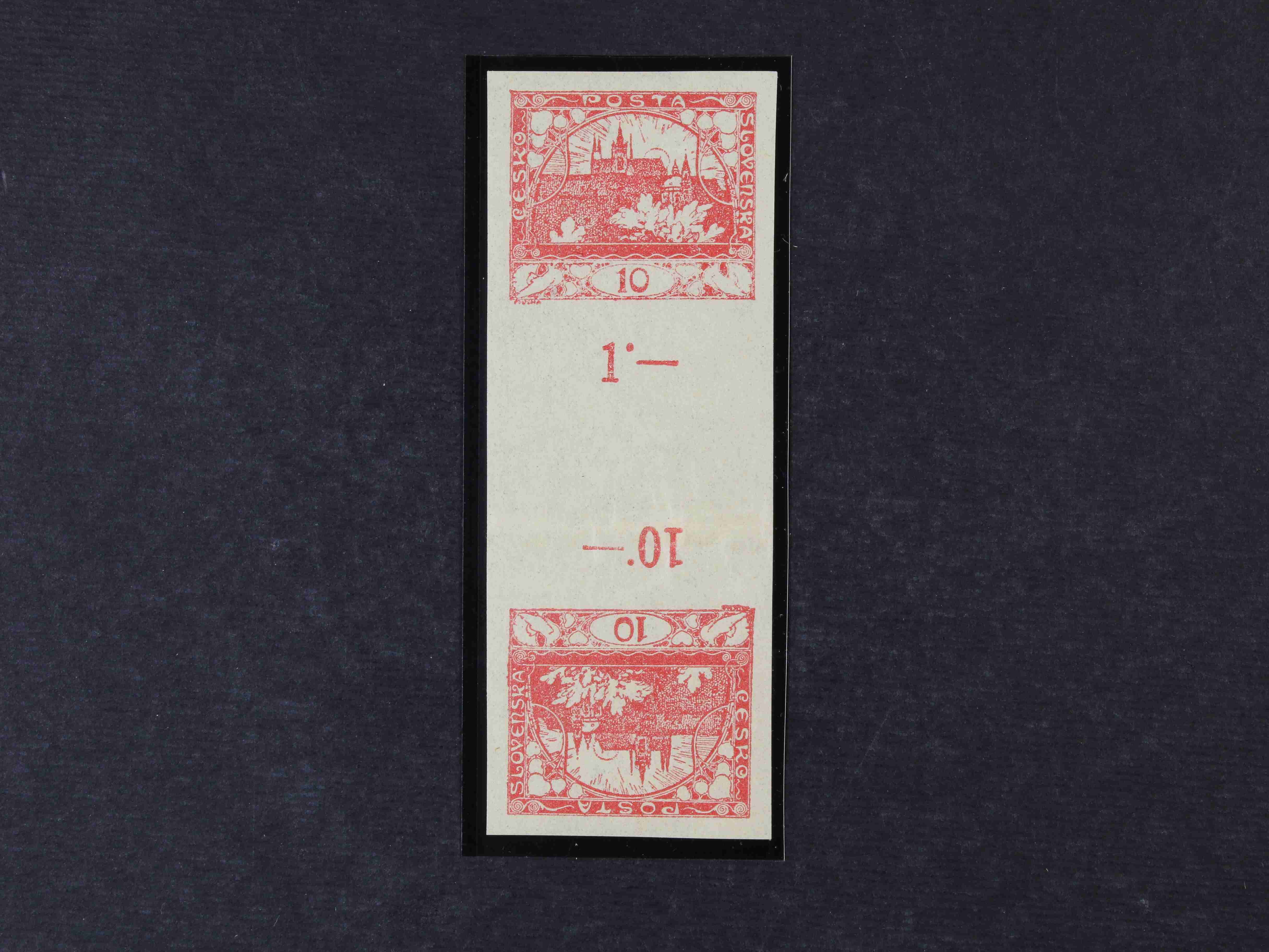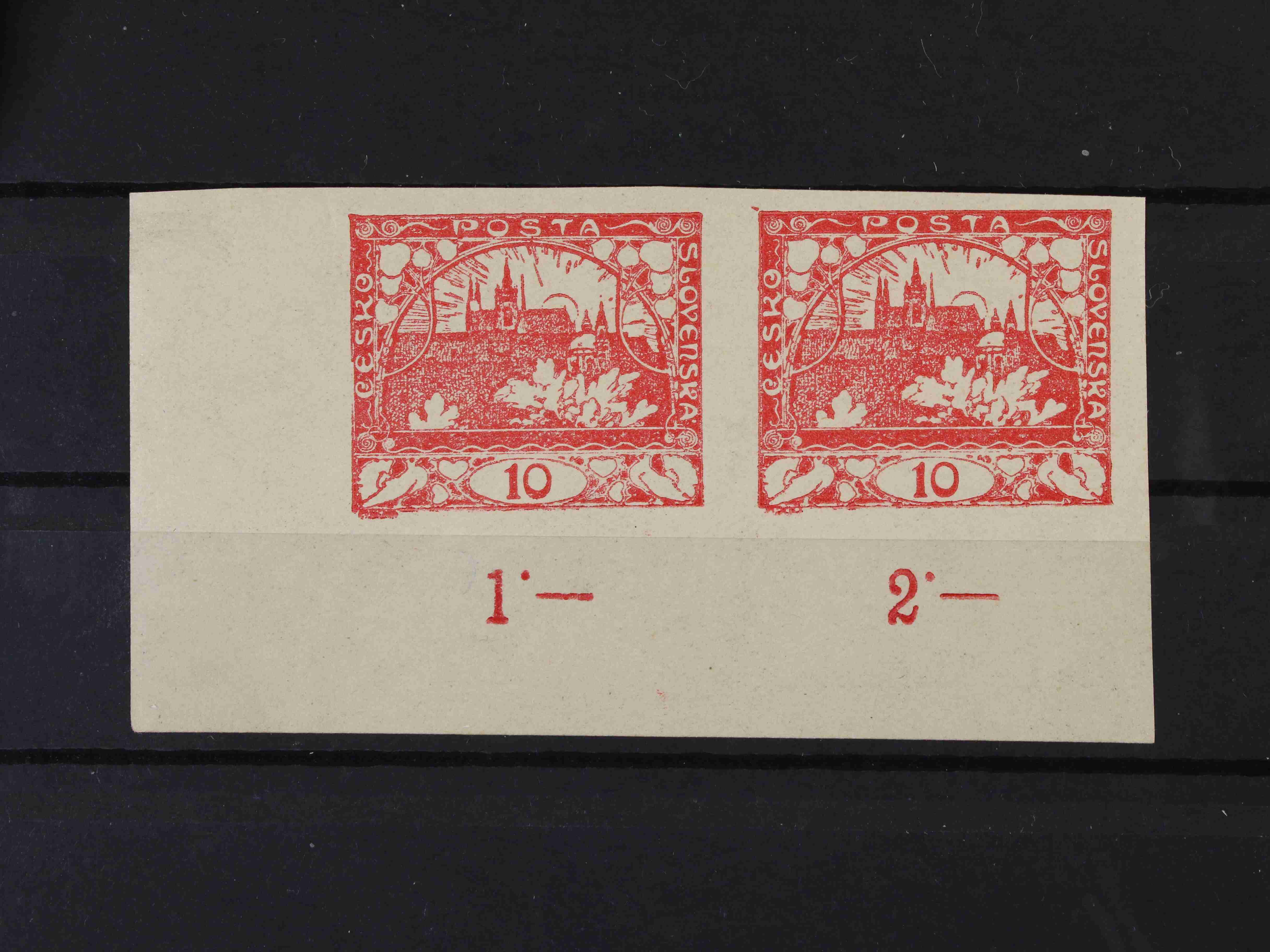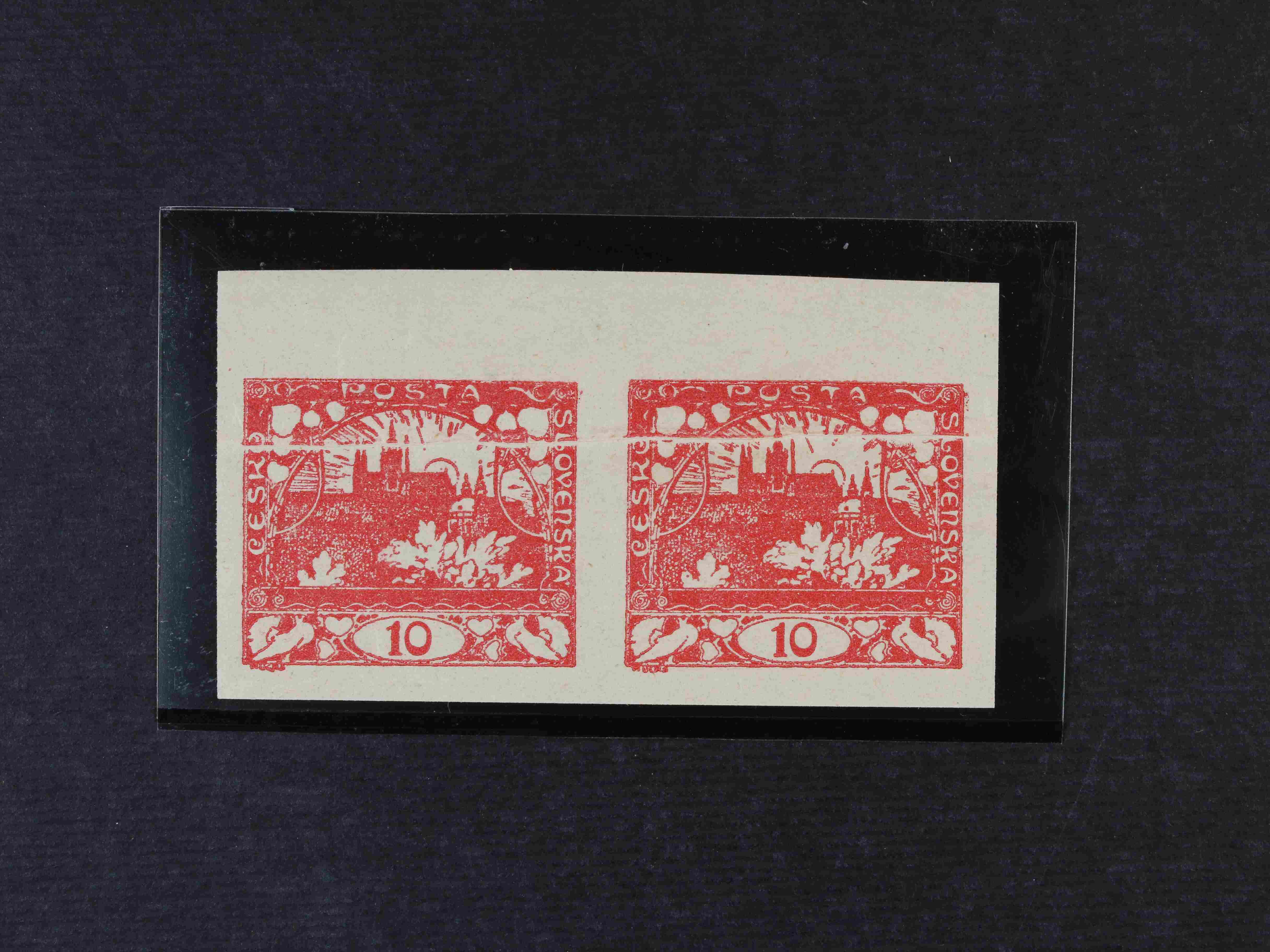 57 zn. č. 5a 10h tmavěčervená ve vodorovné dvoupásce s horním okrajem a vodorovnou složkou papíru 200