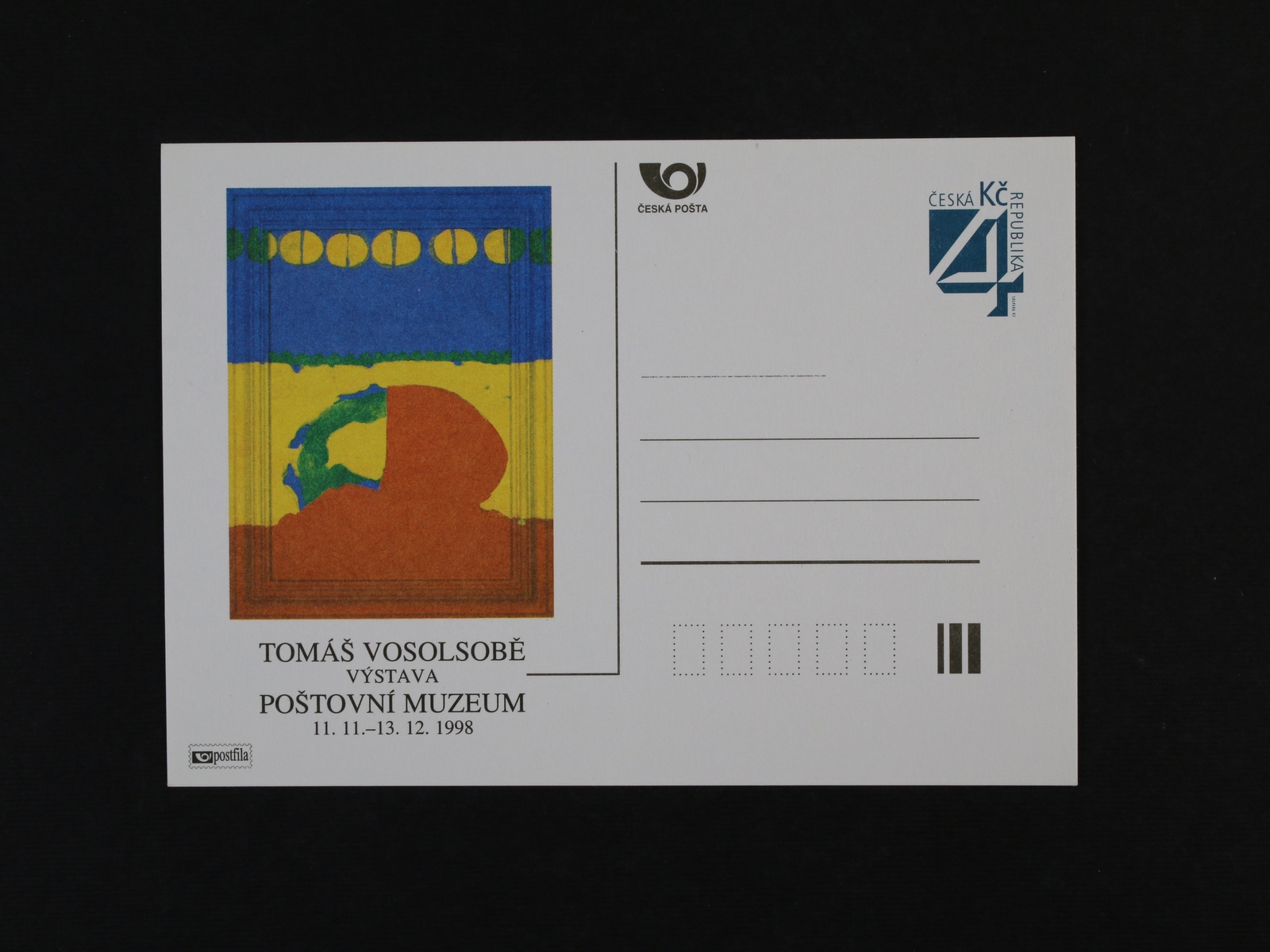 1339 PM 11 TOMÁŠ VOSOLSOBĚ VÝSTAVA POŠTOVNÍ MUZEUM 11.11. - 13.12.98, nepoužitá 400