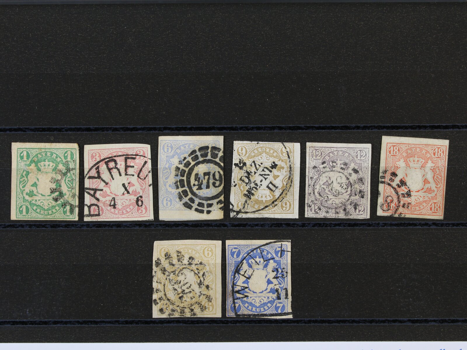 Bavorsko - zn. Mi. č. 14 - 21, znehodnoc. převážně čís. kruh. raz., pěkné střihy, kat. cena min. 500 EUR