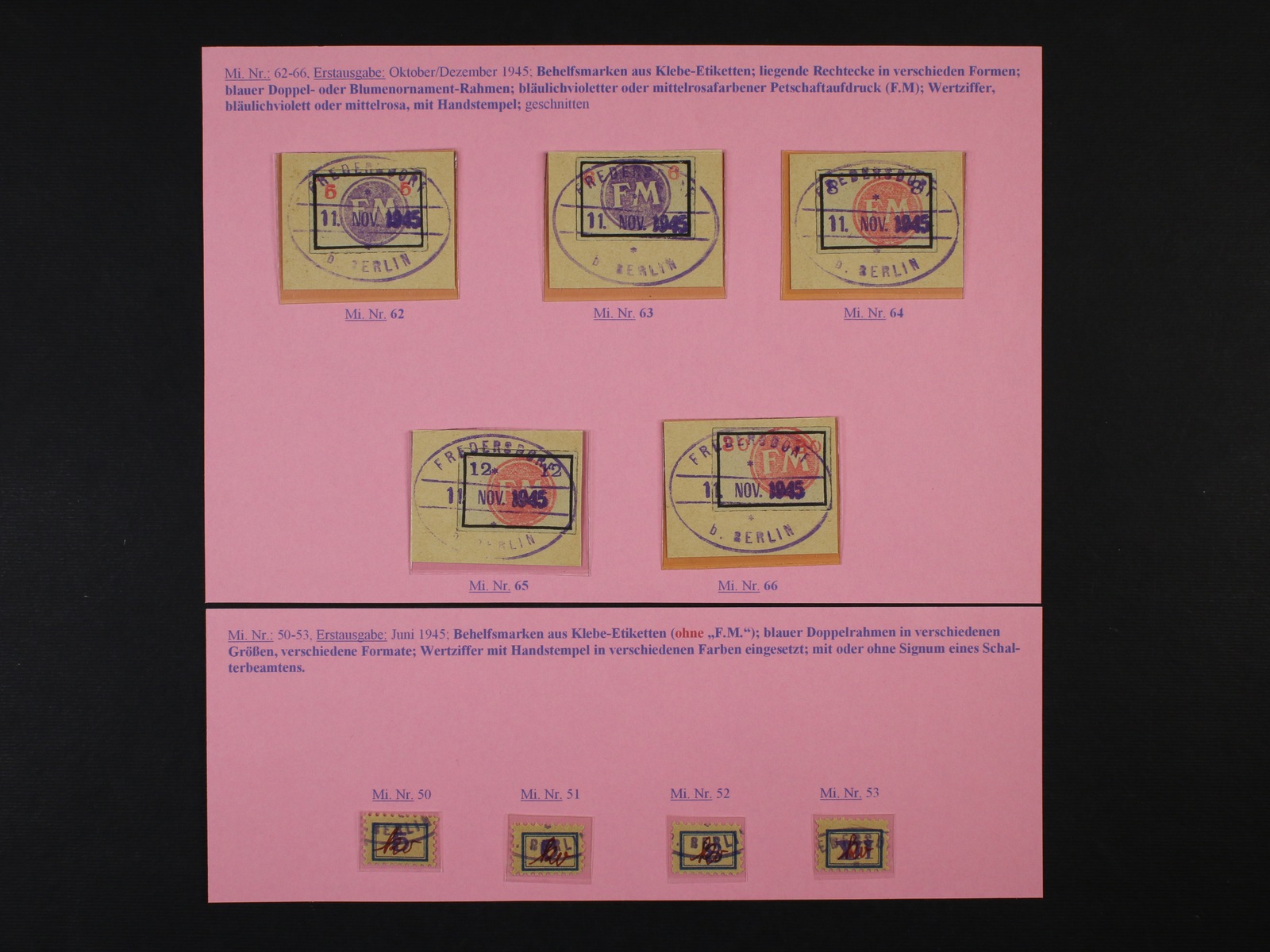 lokální vydání 1945 - FREDERSDORF - zn. Mi. č. 50 - 53, 62 - 66