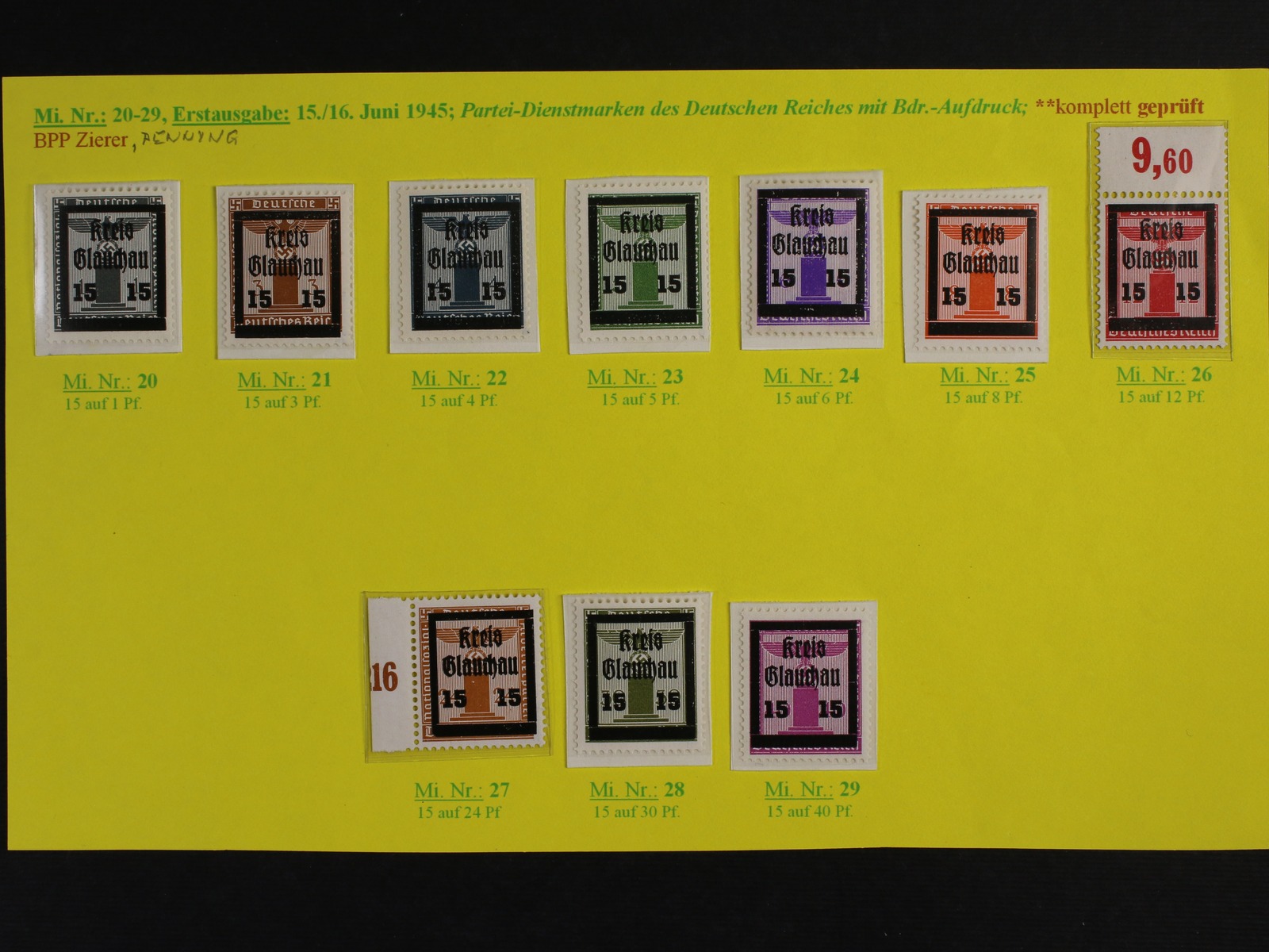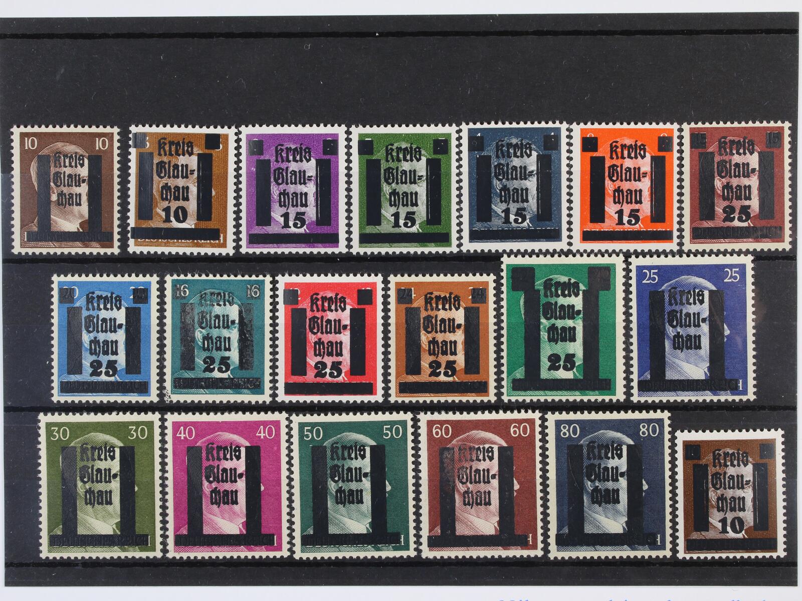 lokální vydání 1945 - GLUCHAU - zn. Mi. č. 20 - 29, dražší zn. zk. Ziere BPP a Penning BPP, kat. 500 EUR