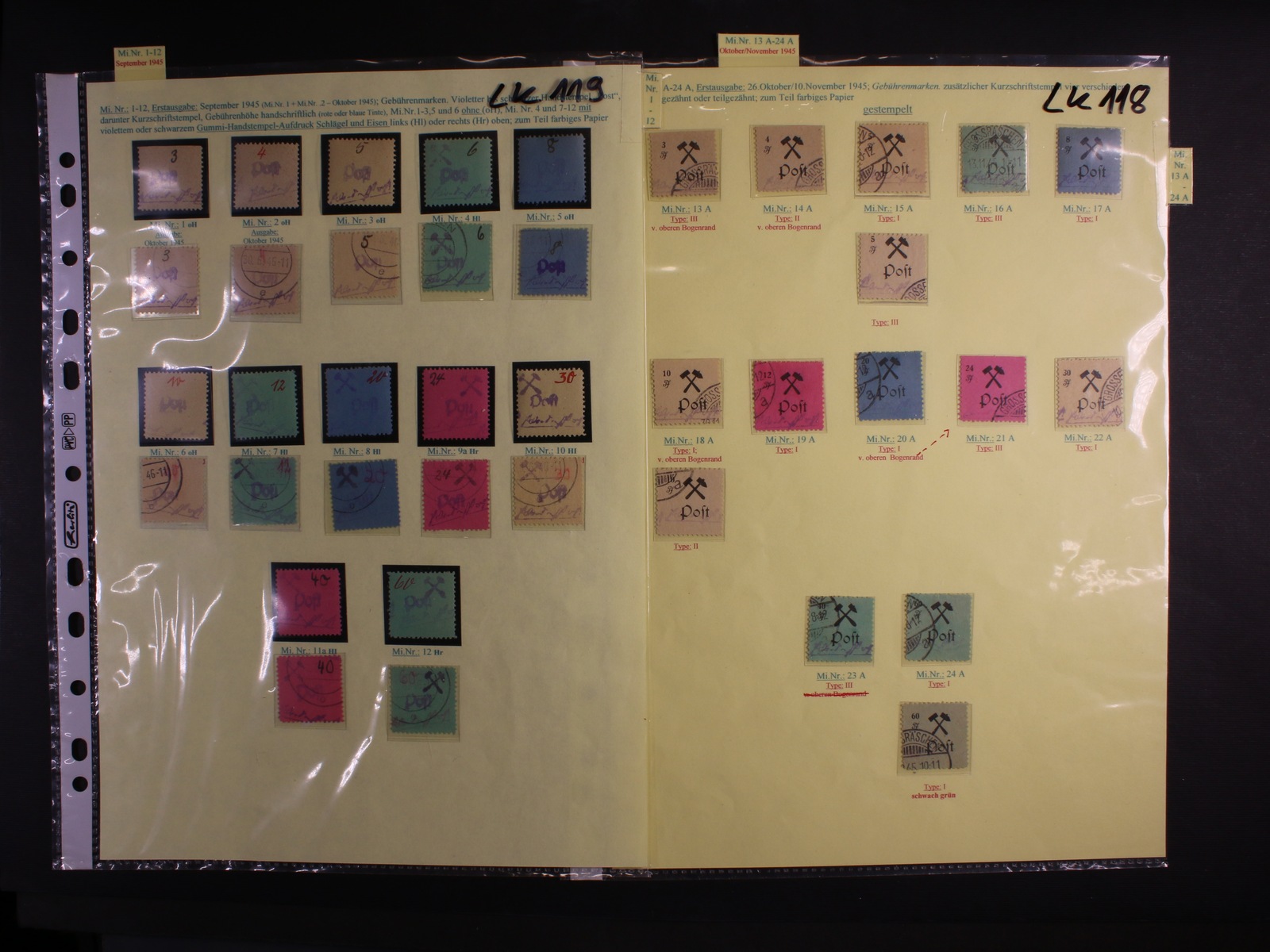 lokální vydání 1945 - GROSSRASCHEN - zn. Mi. č. 1 - 12, 13 A - 24 A (3x - typy, různé barvy a odchylky), Mi. 28, 29, zajímavé, kat. cca 1000 EUR