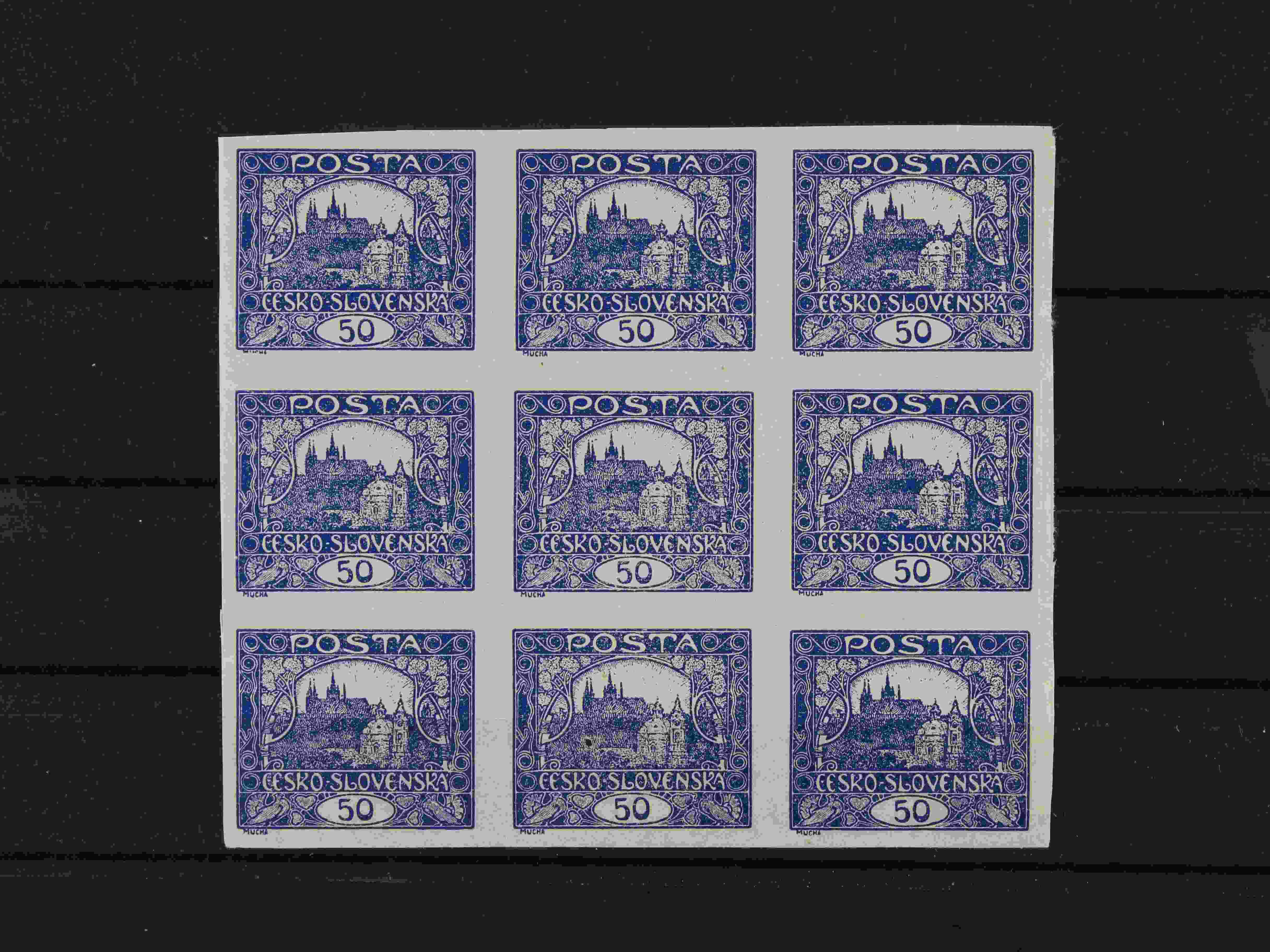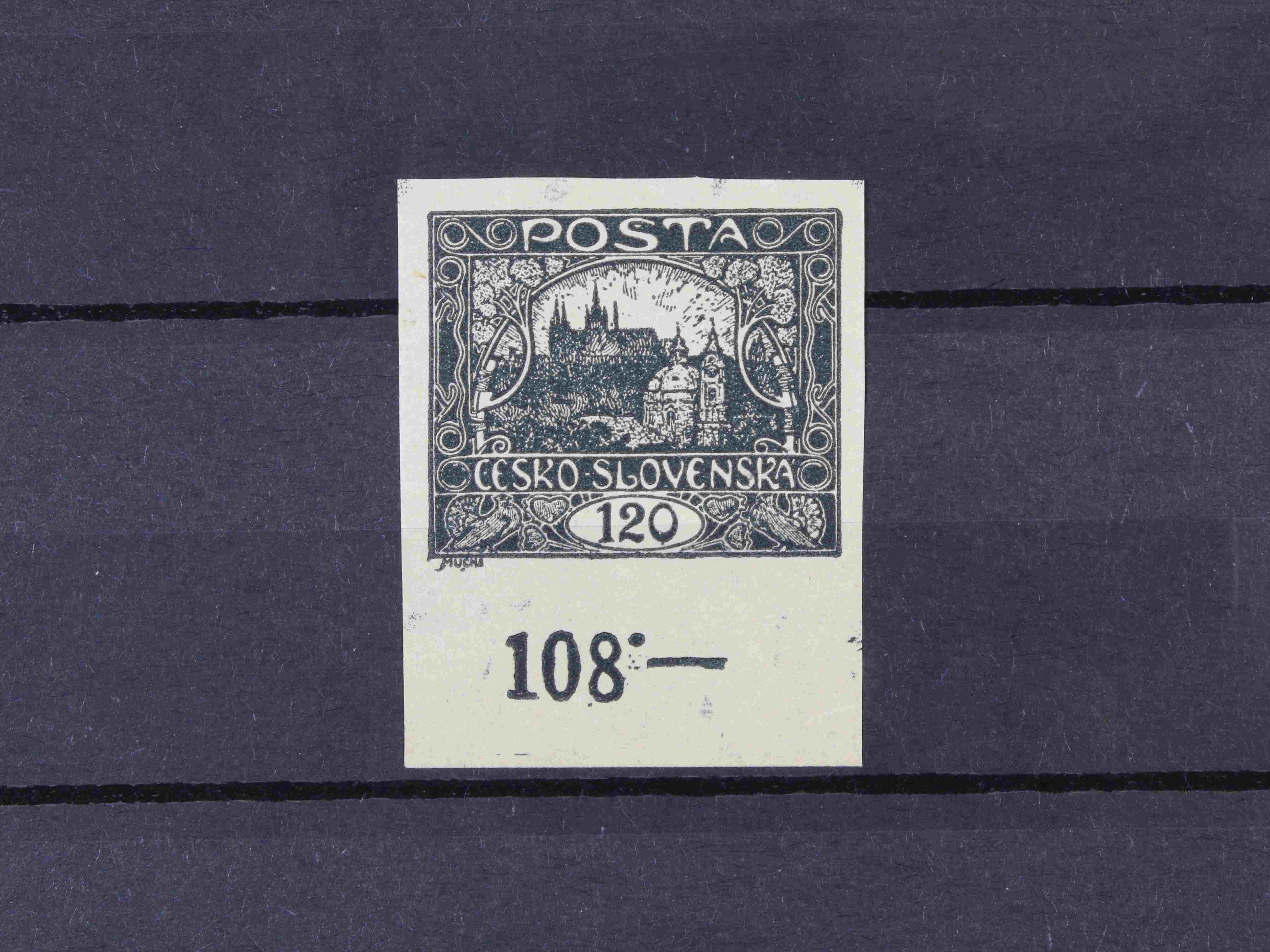 145 zn. č. 13 N - levý spodní roh. kus, dvojitý tisk, extrémě široké okraje, zk.Gilbert, Mrňák 9000