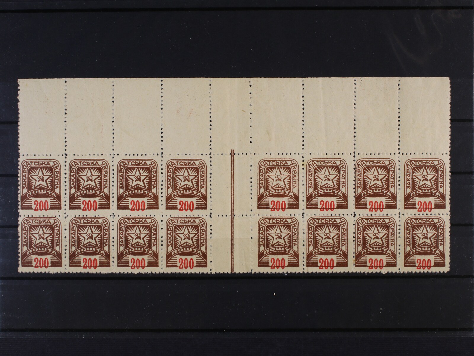 1626 větší sestava známek, pásek, čtyřbloků i vícebloků kat. Majer č. 1 - 11, mj. zn. Majer č. 9 v kompl. 100kusovém TL s DZ 1 A, prvního až třetího definitivního vydání NRZU, se specializací na výr. a tisk. vady - dvojité, vynechané a posunuté perforace, různé posuny barev, kupony, DZ, velmi vysoká kat. cena, uloženo na listech ve velkých tvrdých deskách, zajímavé, k prohlédnutí, mimořádná nabídka 18000