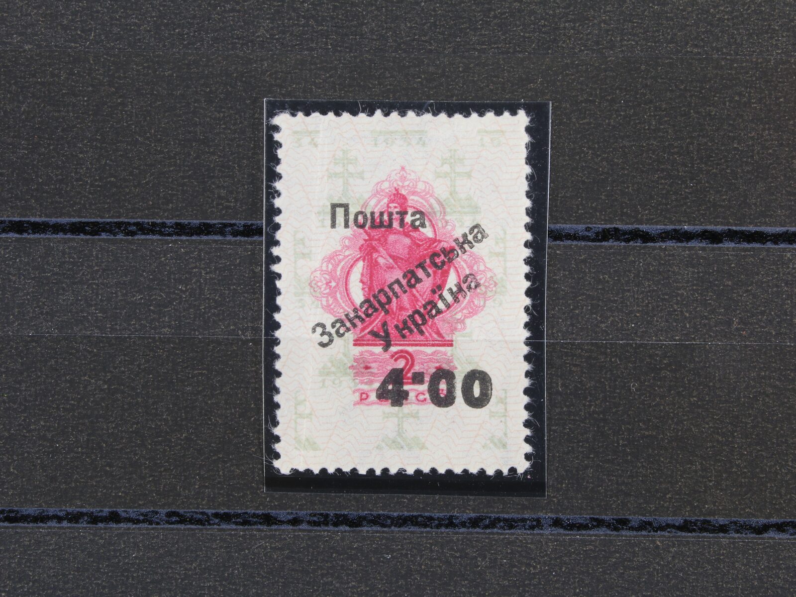 1625 zn. kat. Majer Uf 13, kolek 4.00/2P Užhorodský přetisk I. vydání, zk. Wallner, lehce zvrásněný papír, náklad pouhých 155 ks, kat. cena 8300 Kč 3600