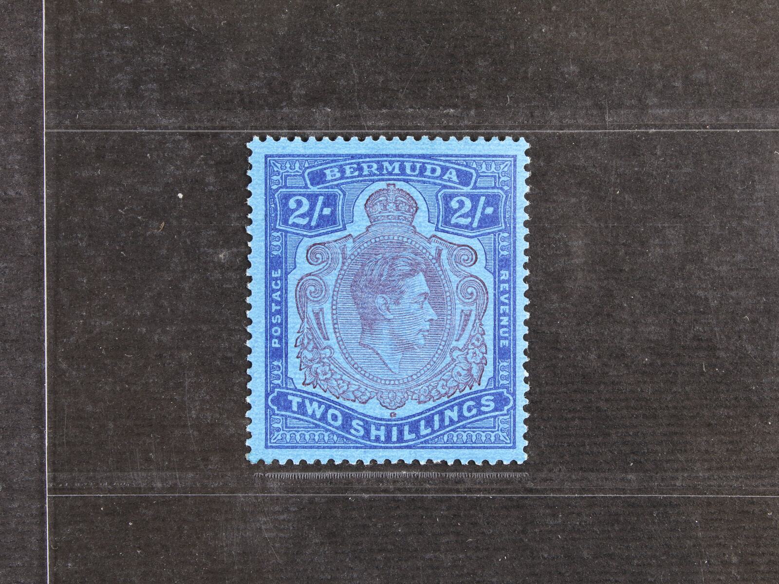 1631 Bermuda 1938 - zn. SG. č.116cf, Jiří VI. 2Sh modrá / purpurová, GASH IN CHIN; bezvadná a výrazná specialita, kat. 325 GBP 3000