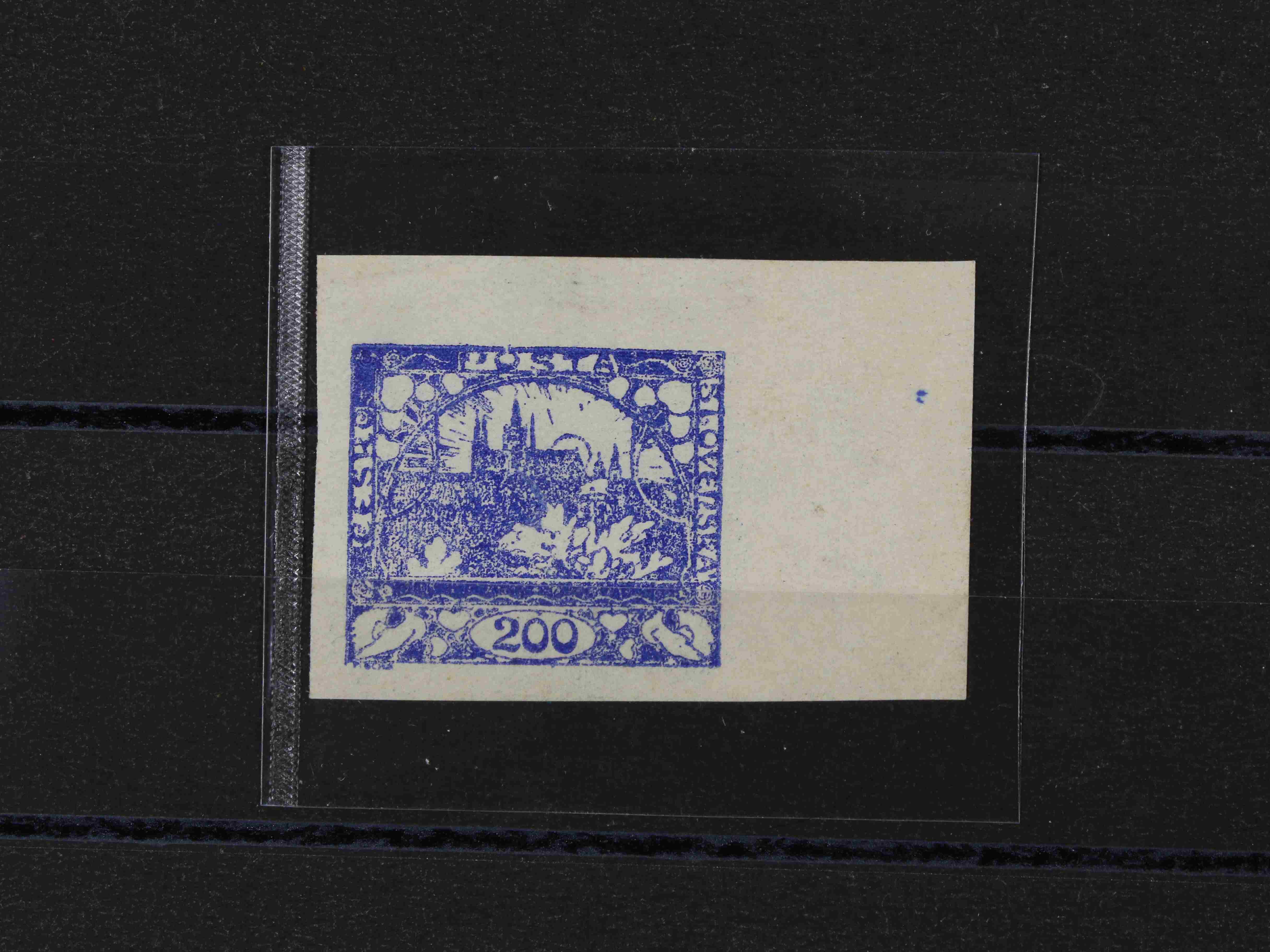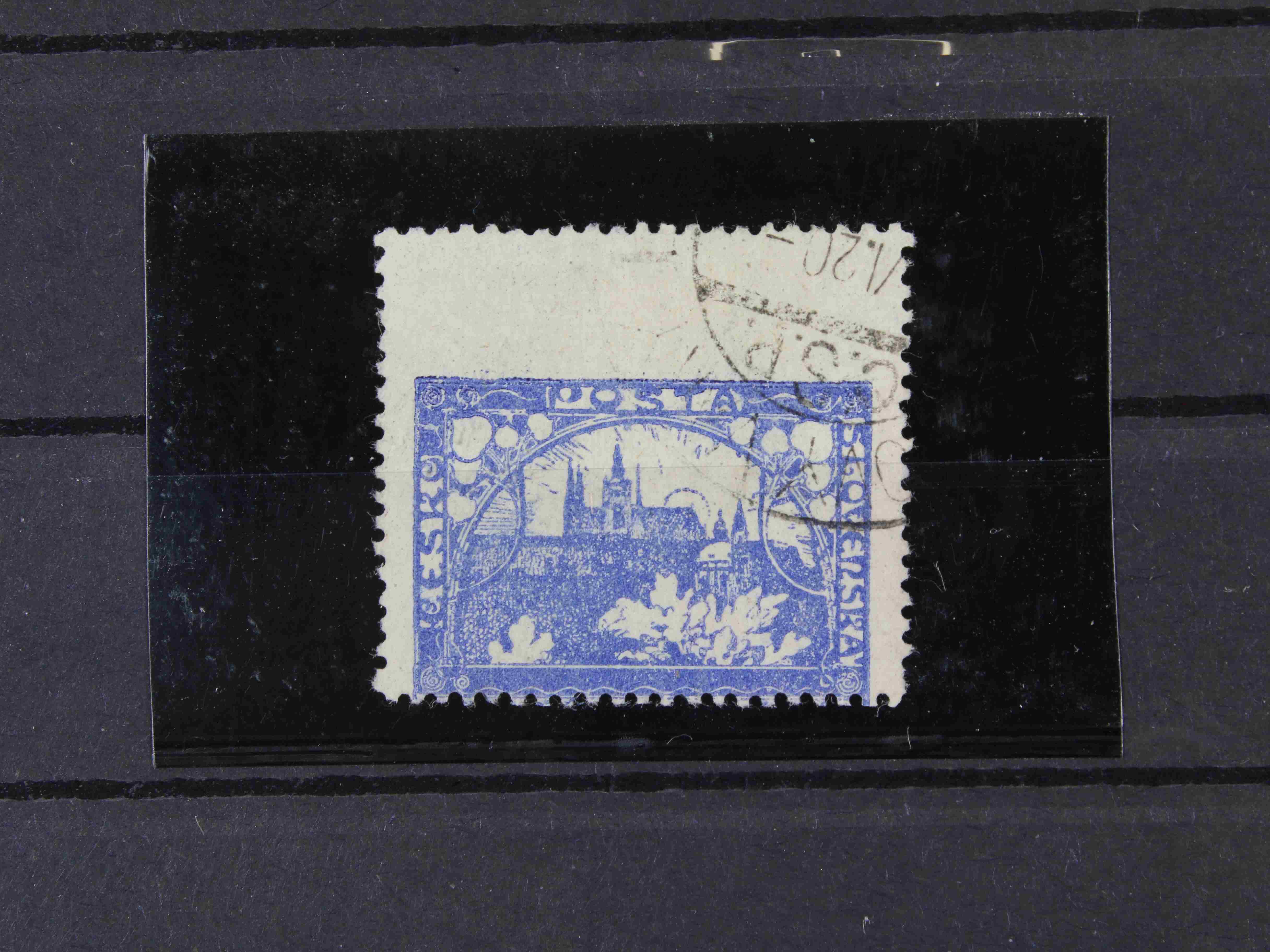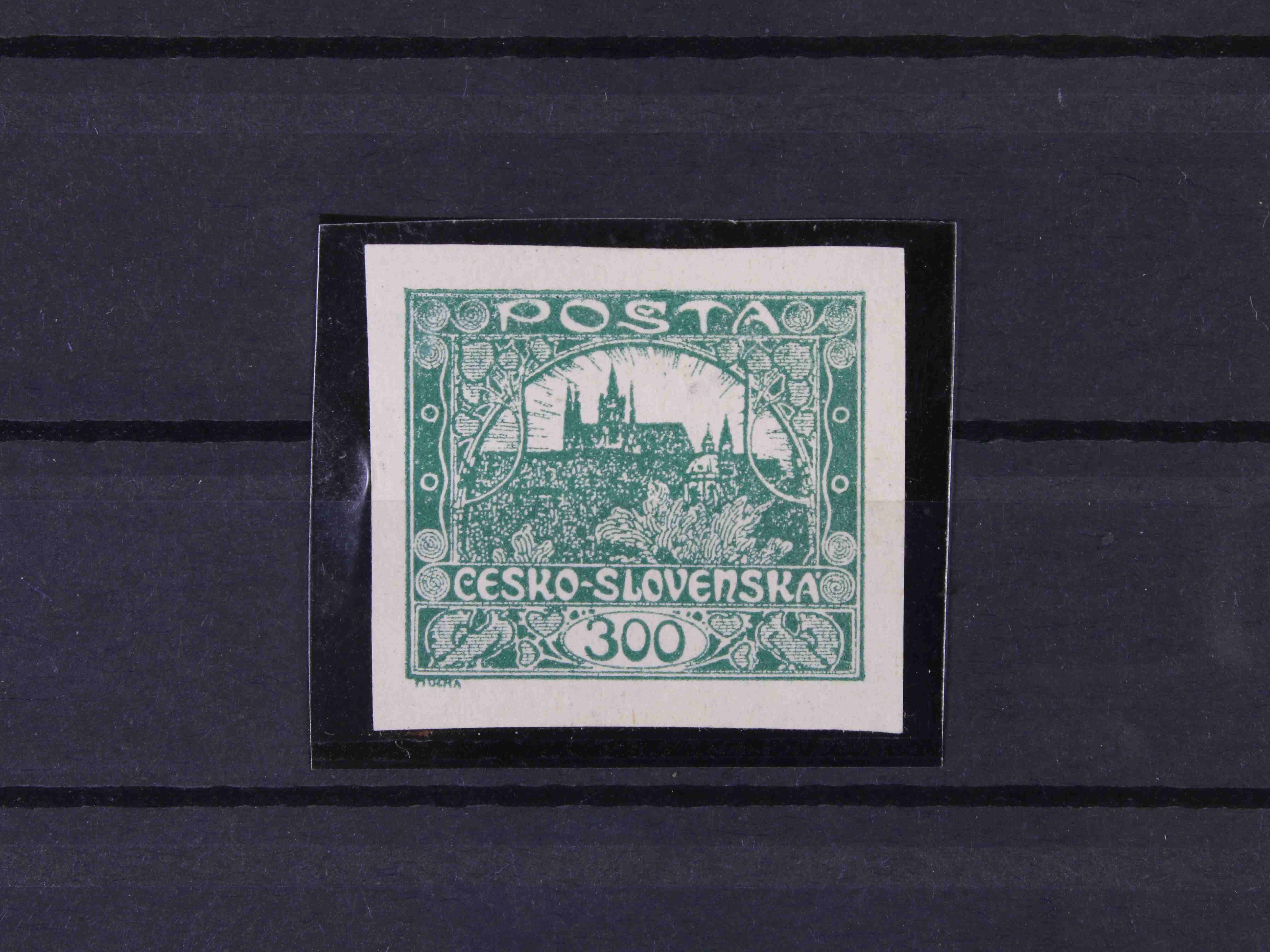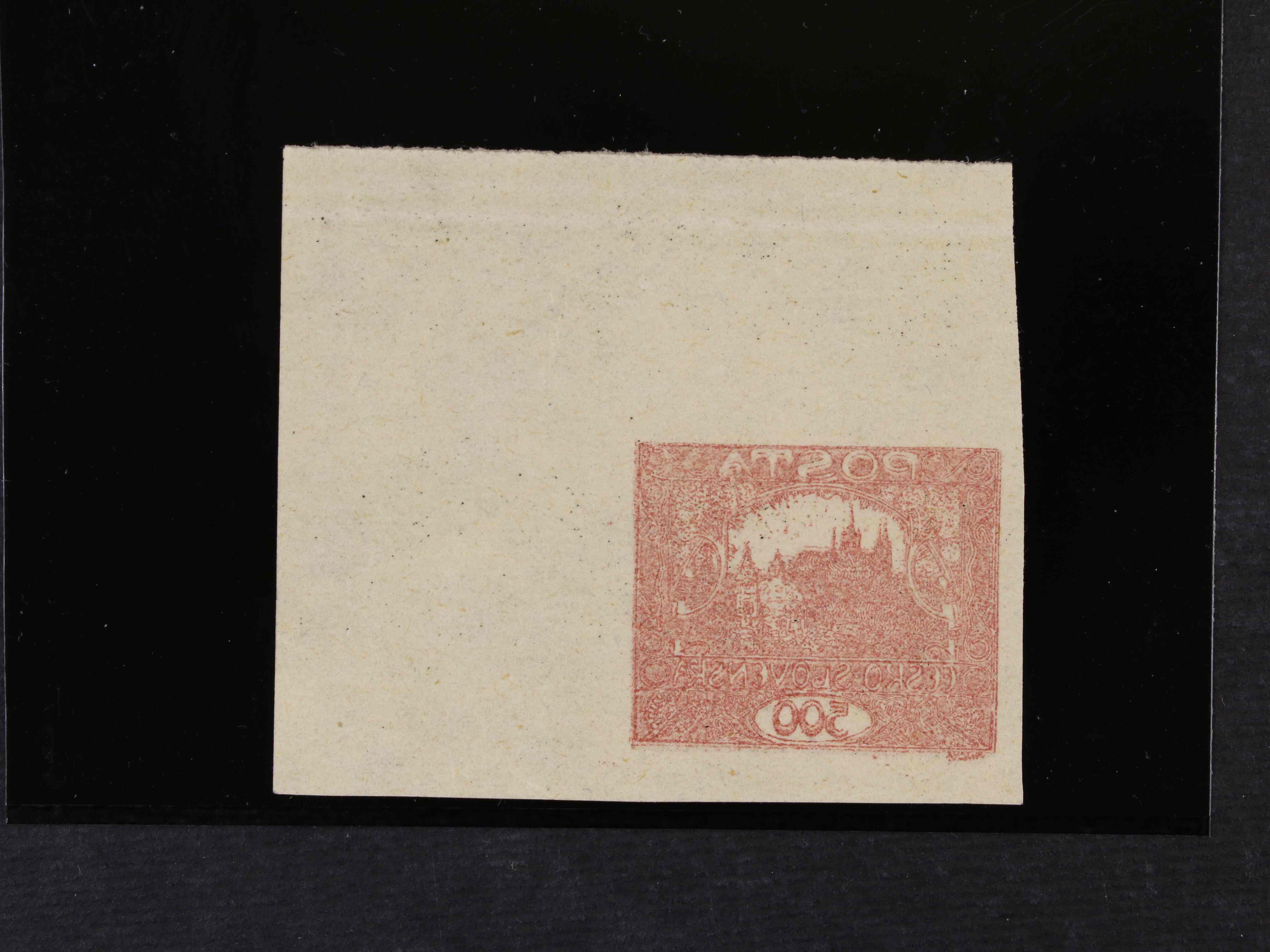 179 zn. č. 25, pravá horní rohová známka s obtiskem, stopa po nálepce na okraji mimo zn. 300