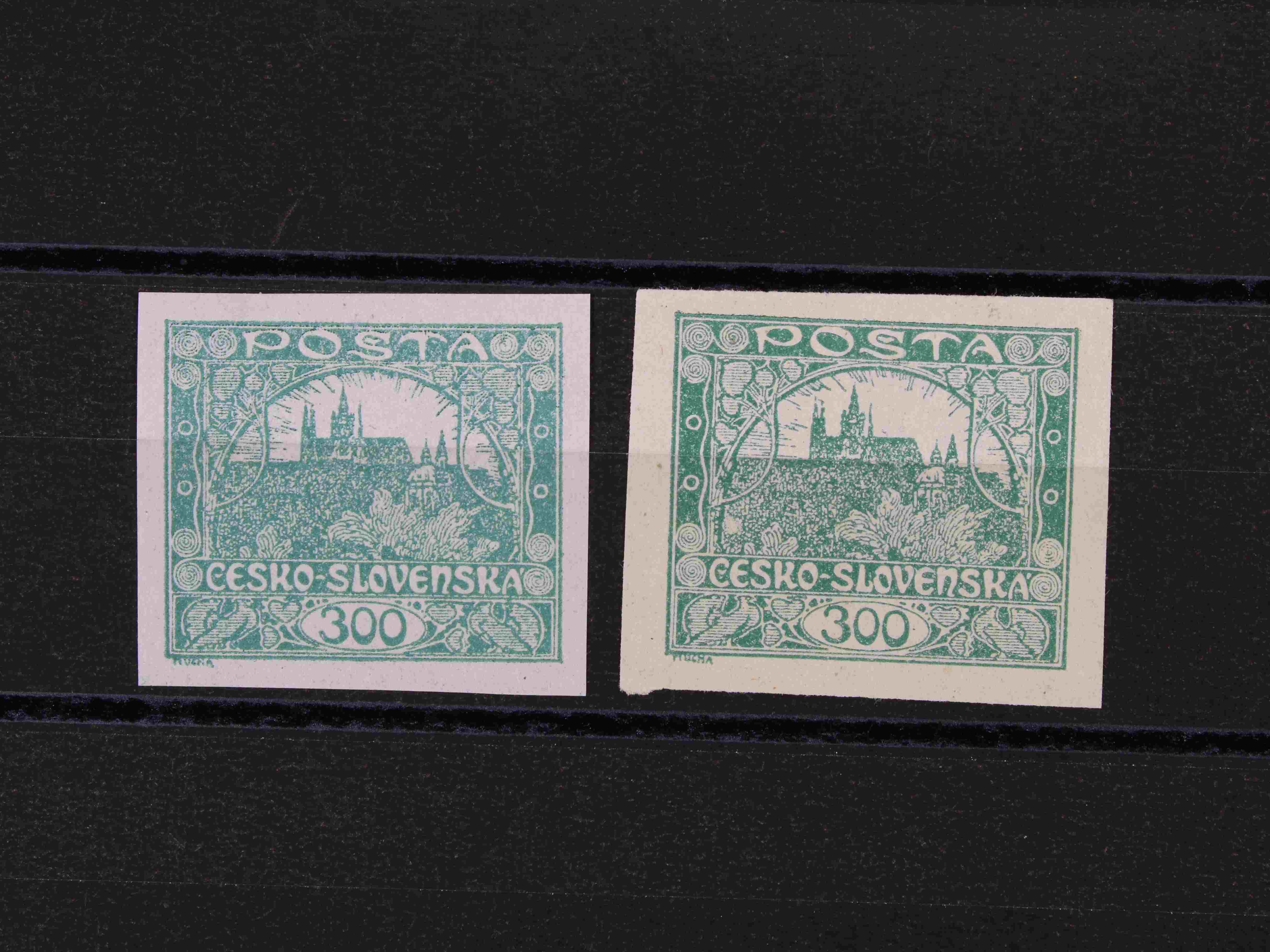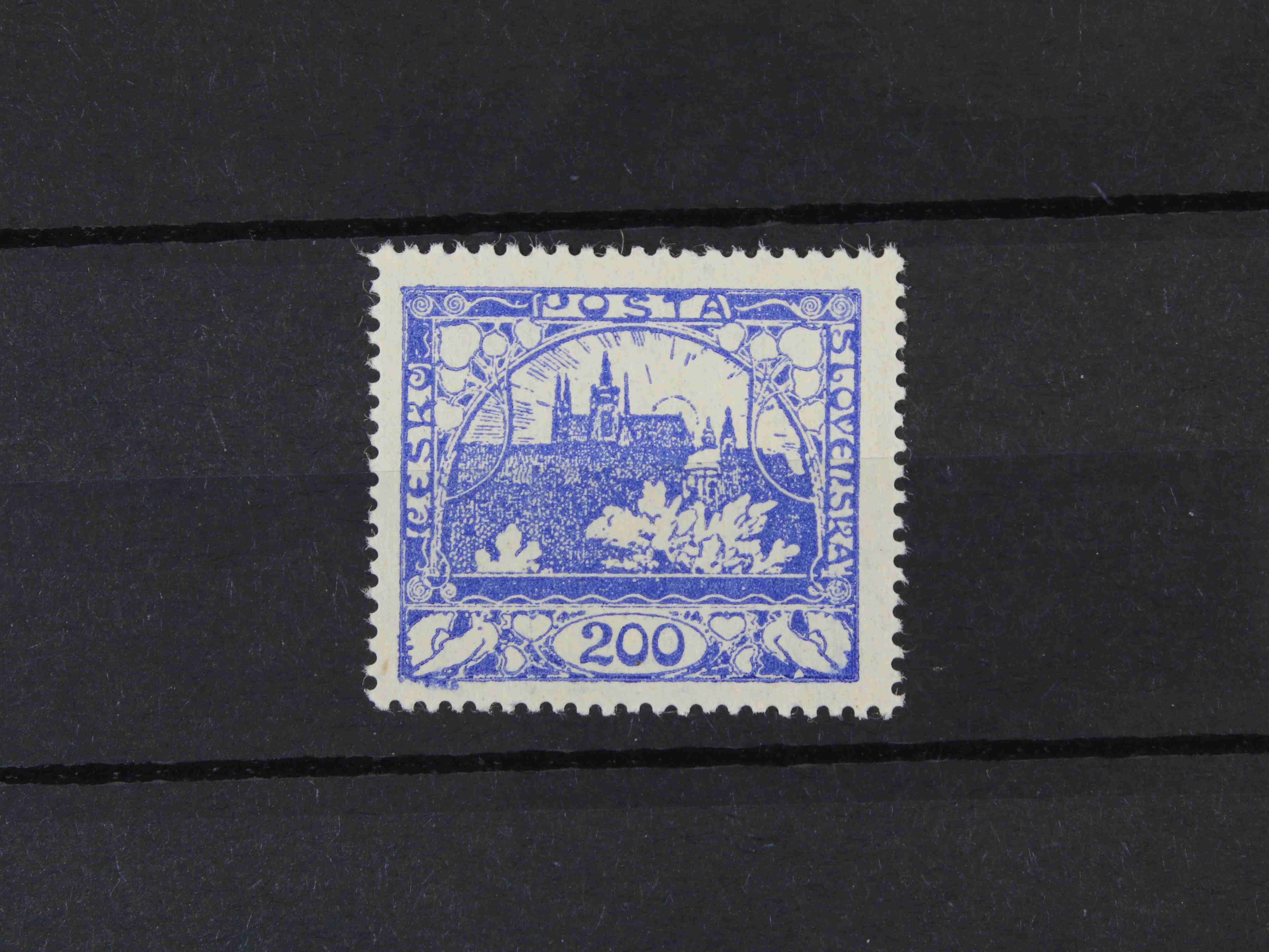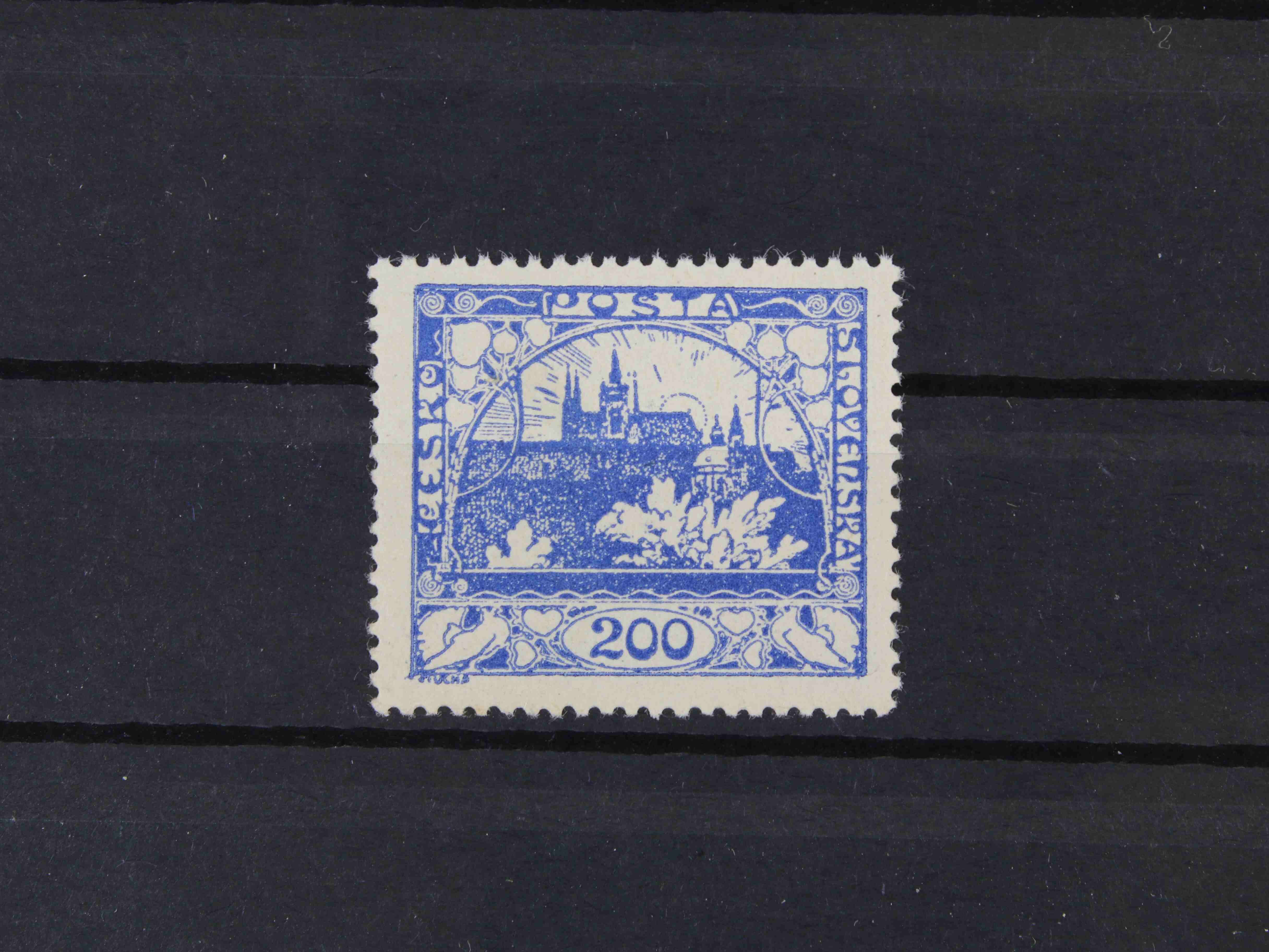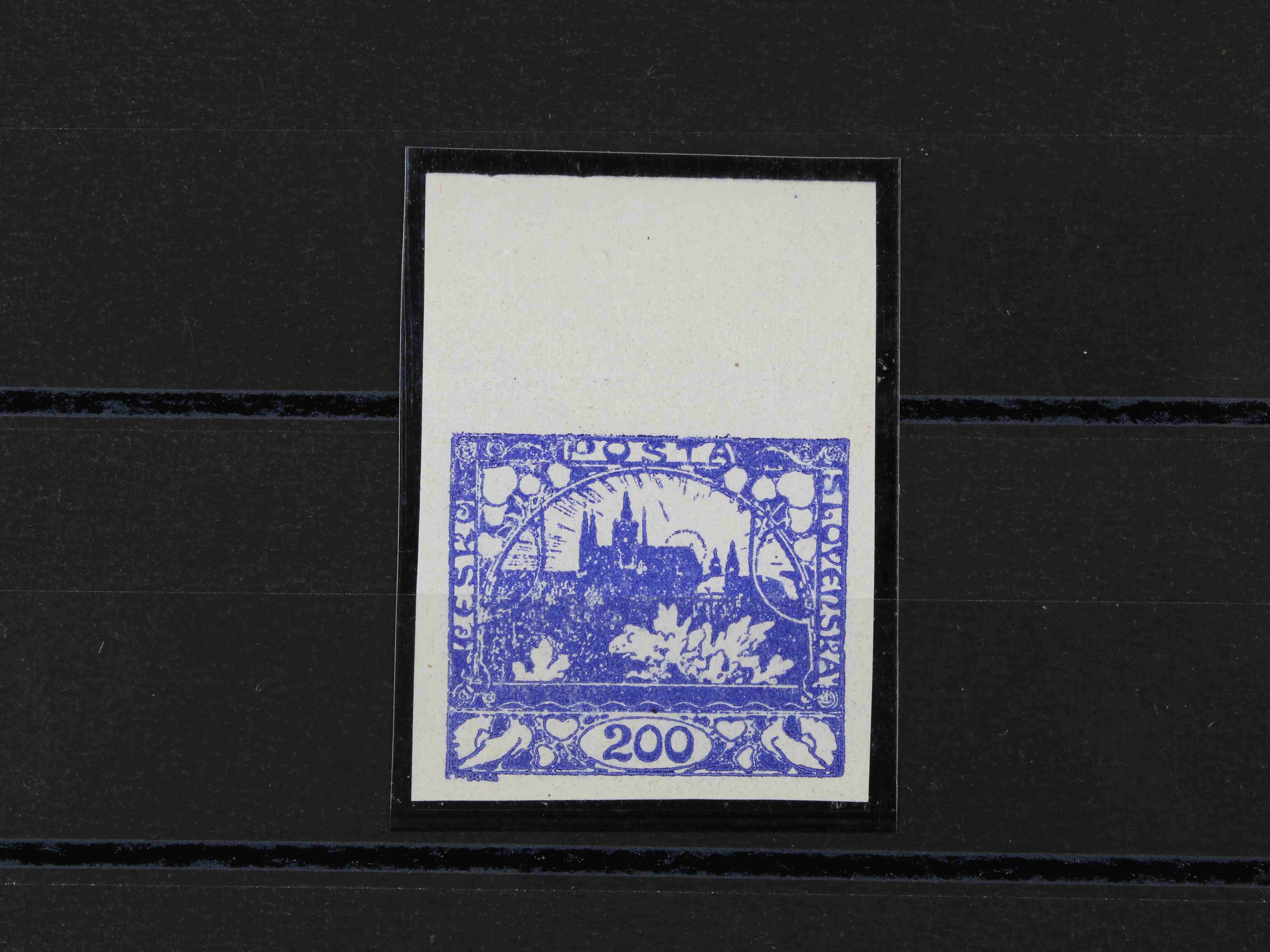 179 zn. č. 25, pravá horní rohová známka s obtiskem, stopa po nálepce na okraji mimo zn. 300