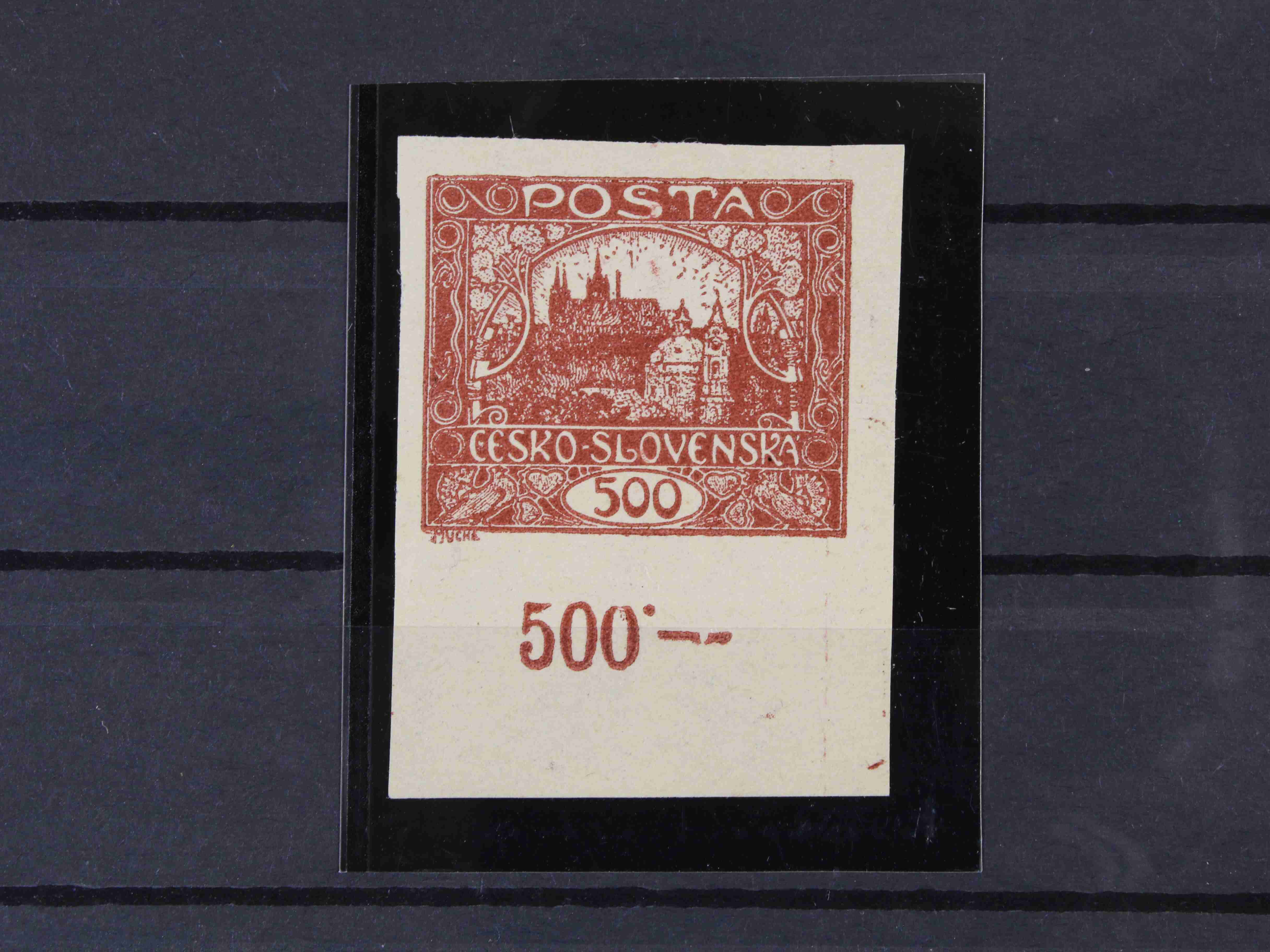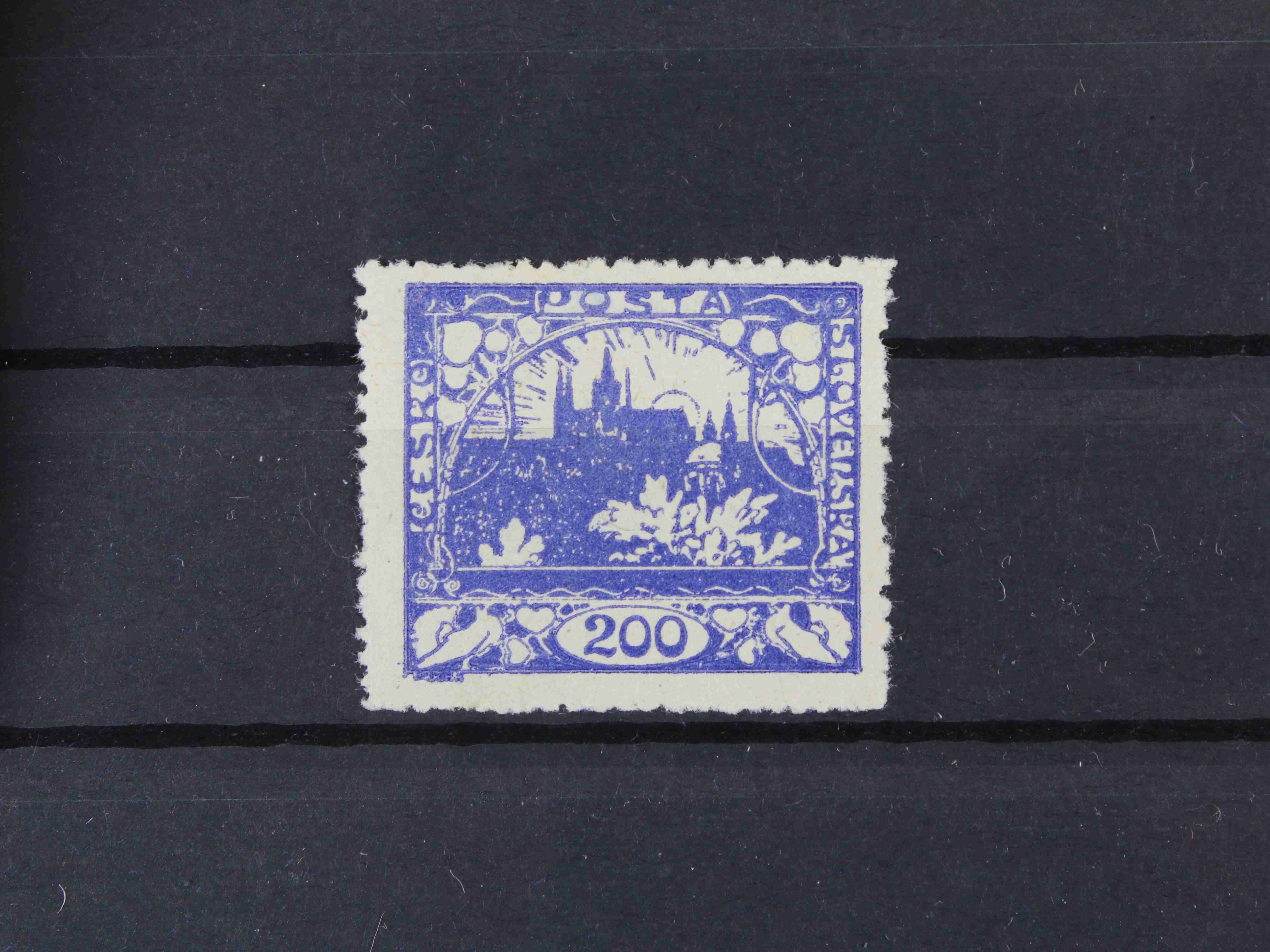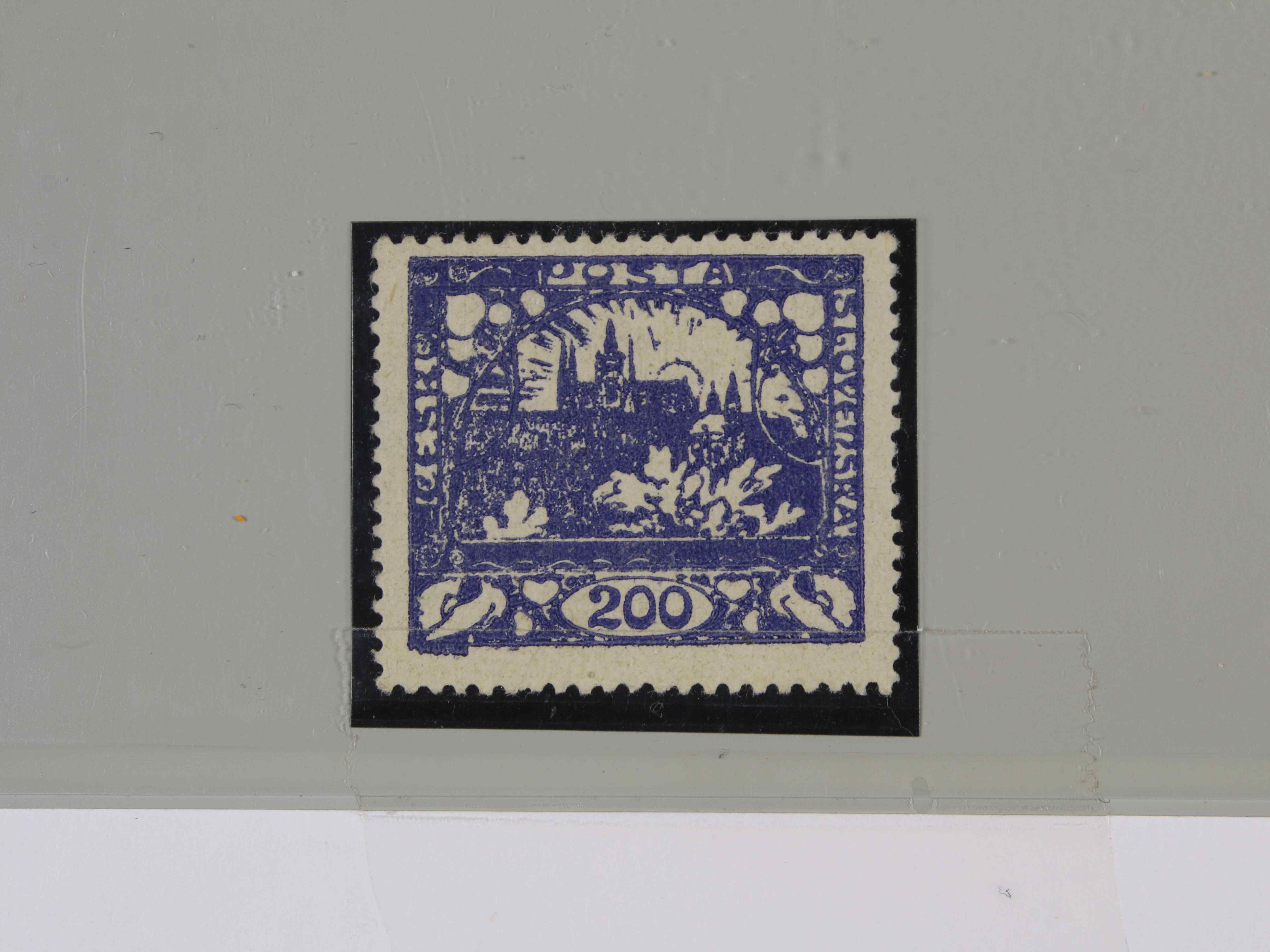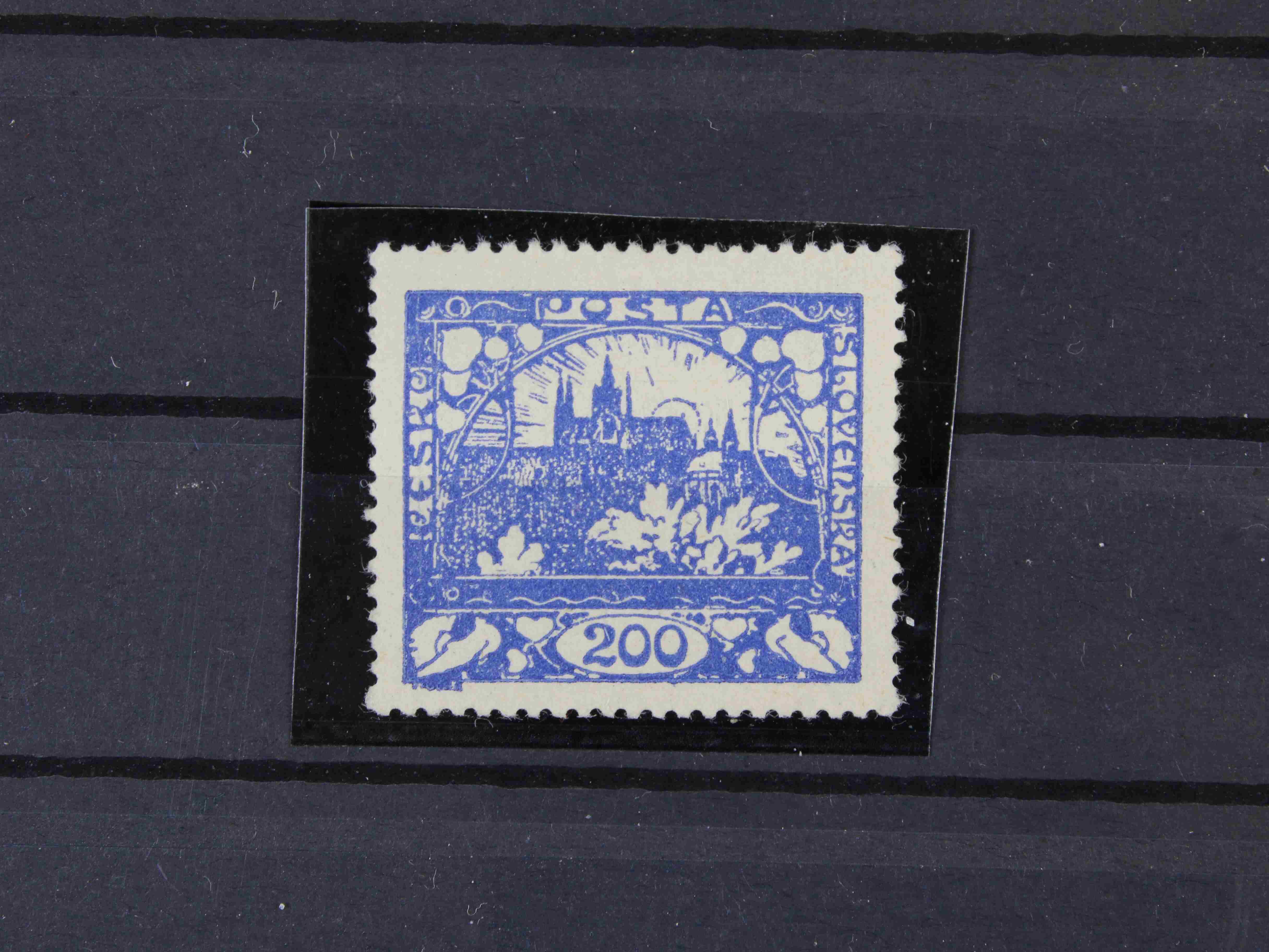 179 zn. č. 25, pravá horní rohová známka s obtiskem, stopa po nálepce na okraji mimo zn. 300