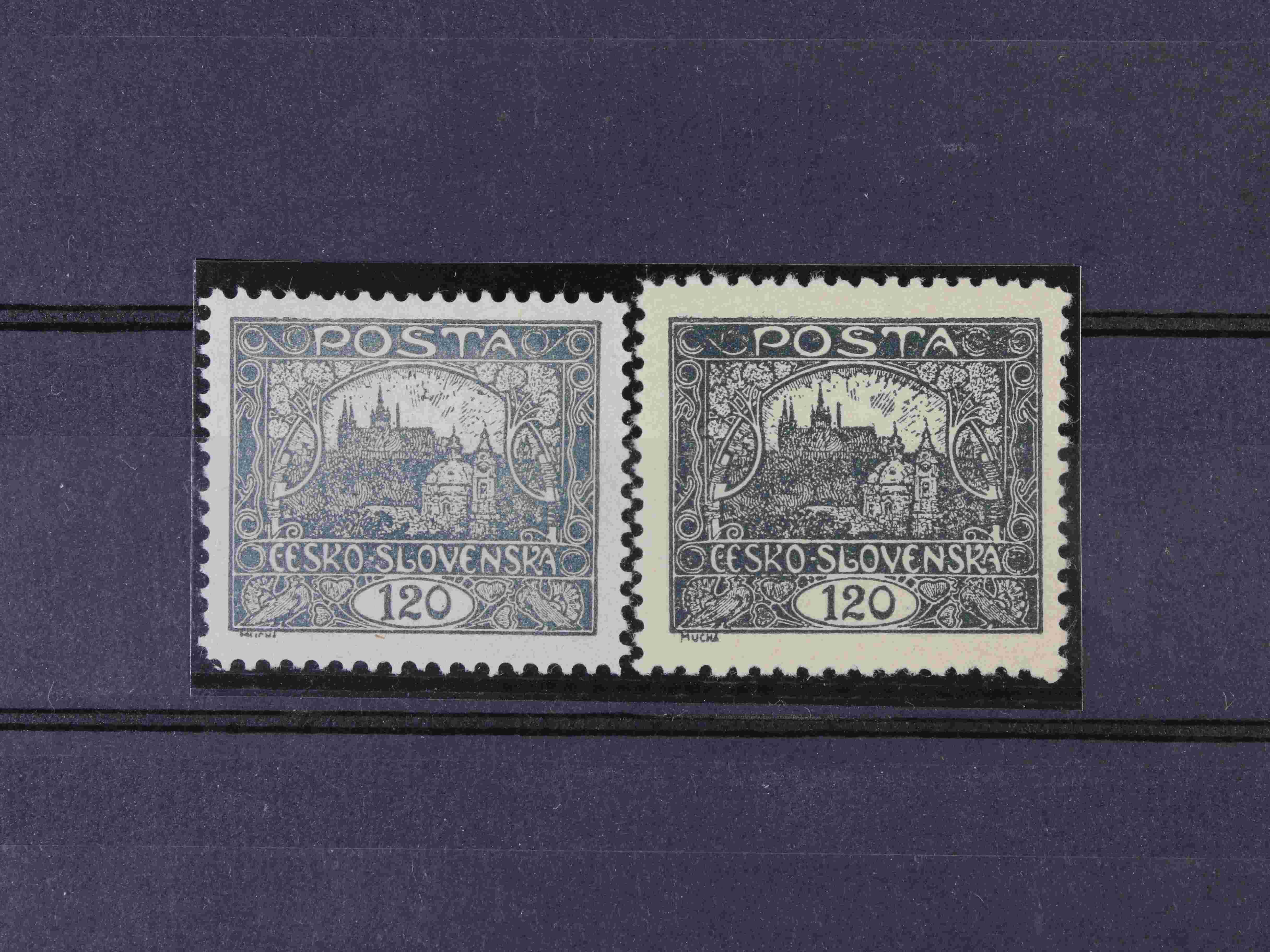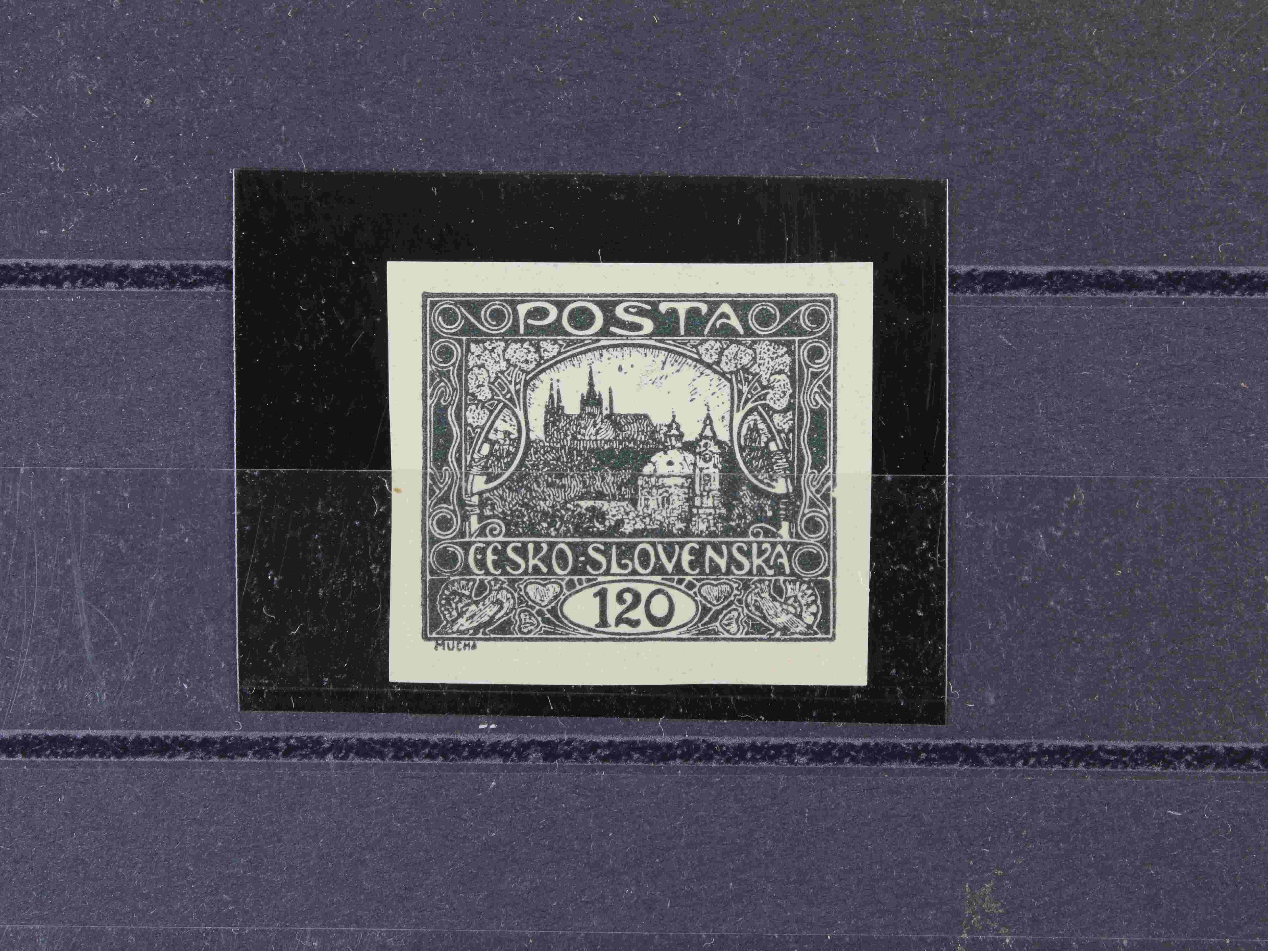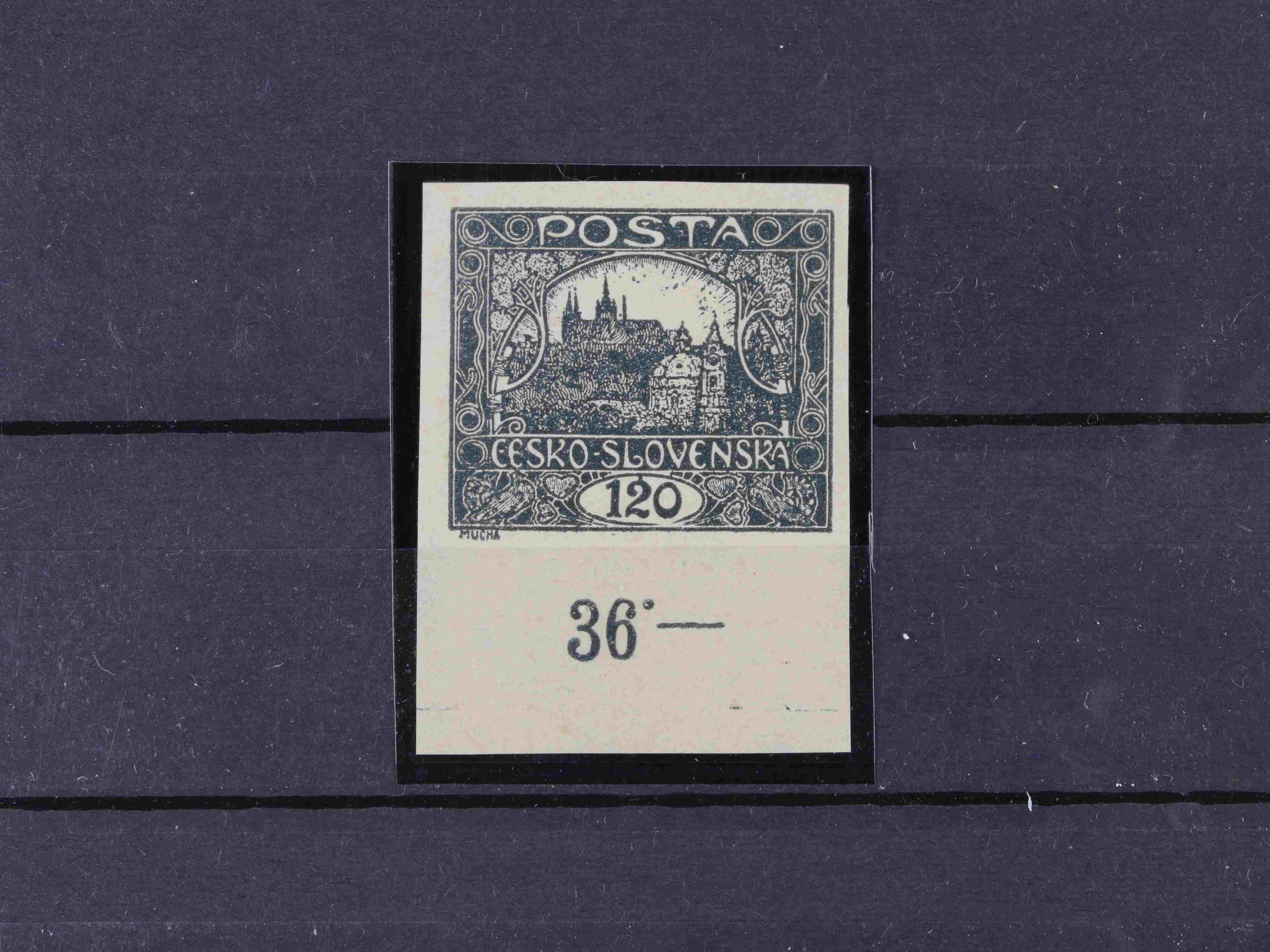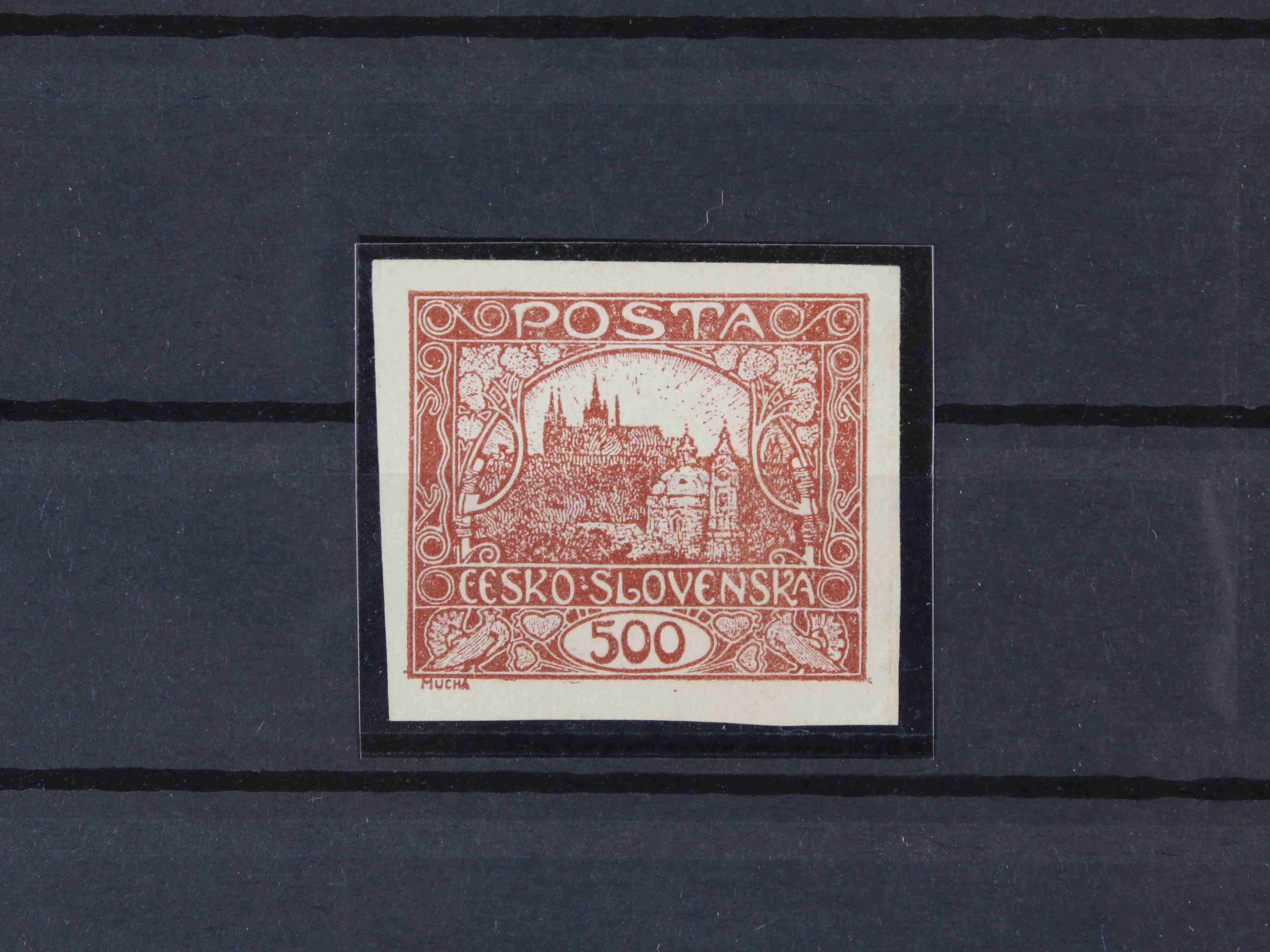 179 zn. č. 25, pravá horní rohová známka s obtiskem, stopa po nálepce na okraji mimo zn. 300