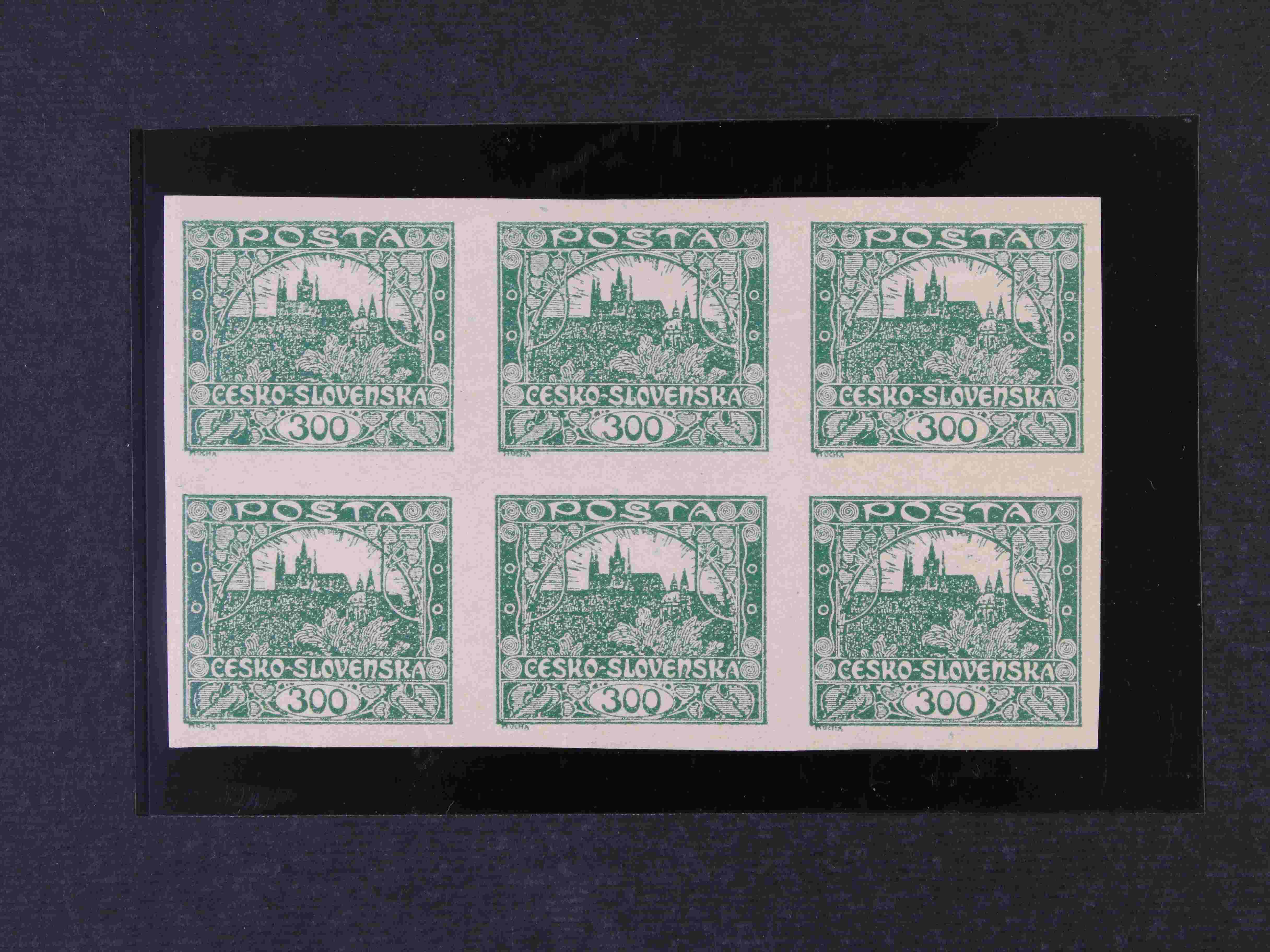 176 zn. č. 23 300h zelená, tmavší odstín v 6ti-bloku, v horní řadě vodorovný lom v papíru 1000
