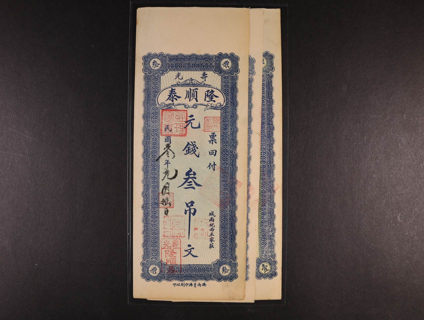Chíng Tái Lung bez hodnoty, Chíng Ho Yung 3 Tiao, Tai Hsing 10 Tiao, Tíen Heng Cháng 20 Tiao, nevydané formuláře, soukromé vydání, 4ks,