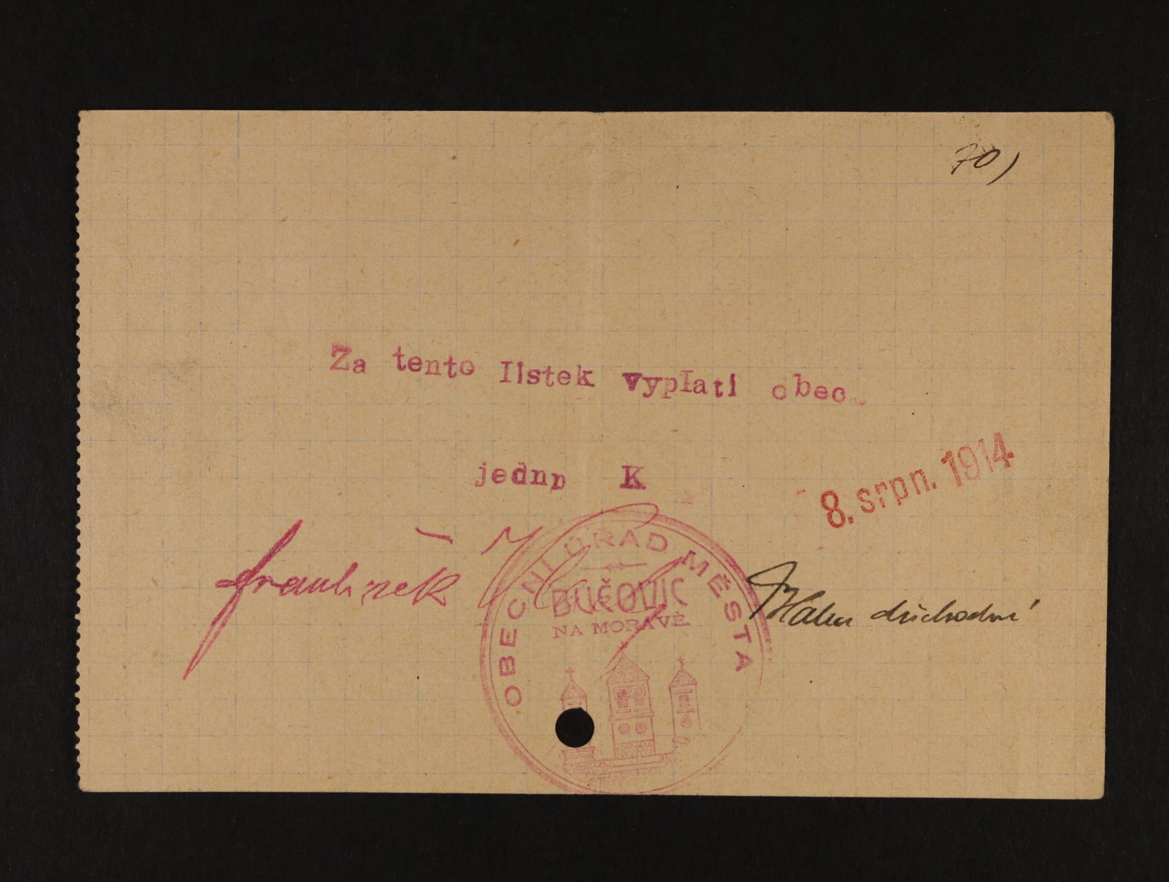 Butschowitz (Bučovice), 1 K 8.srpn. 1914, D.H. 20.1.1a, vzácná