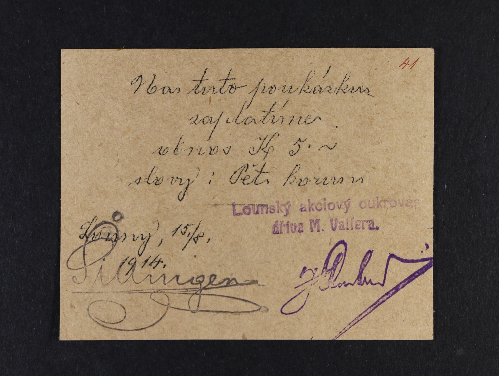 Louny, 5 K 15.8.1914 Lounský akciový cukrovar, D.H. 116.3.3