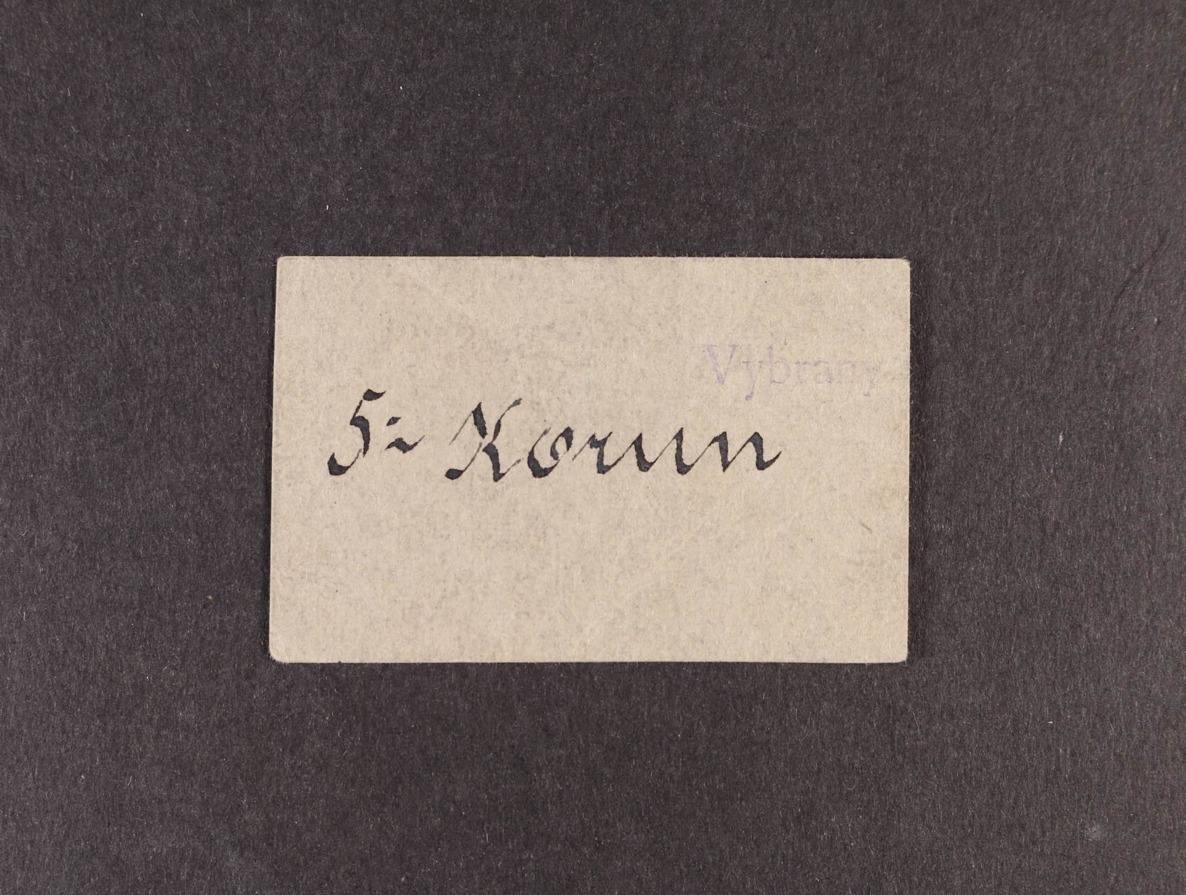 Kostelec nad Orlicí, L. J. Pek, 5 Kč b.d., var - tlačená mince z lepenky se stříbrným potiskem, na Rv. reklamní tisk (PEKOVA KÁVA VÍTĚZÍ !), dosud zcela neznámý typ, DH.102.1.1, velmi vzácná