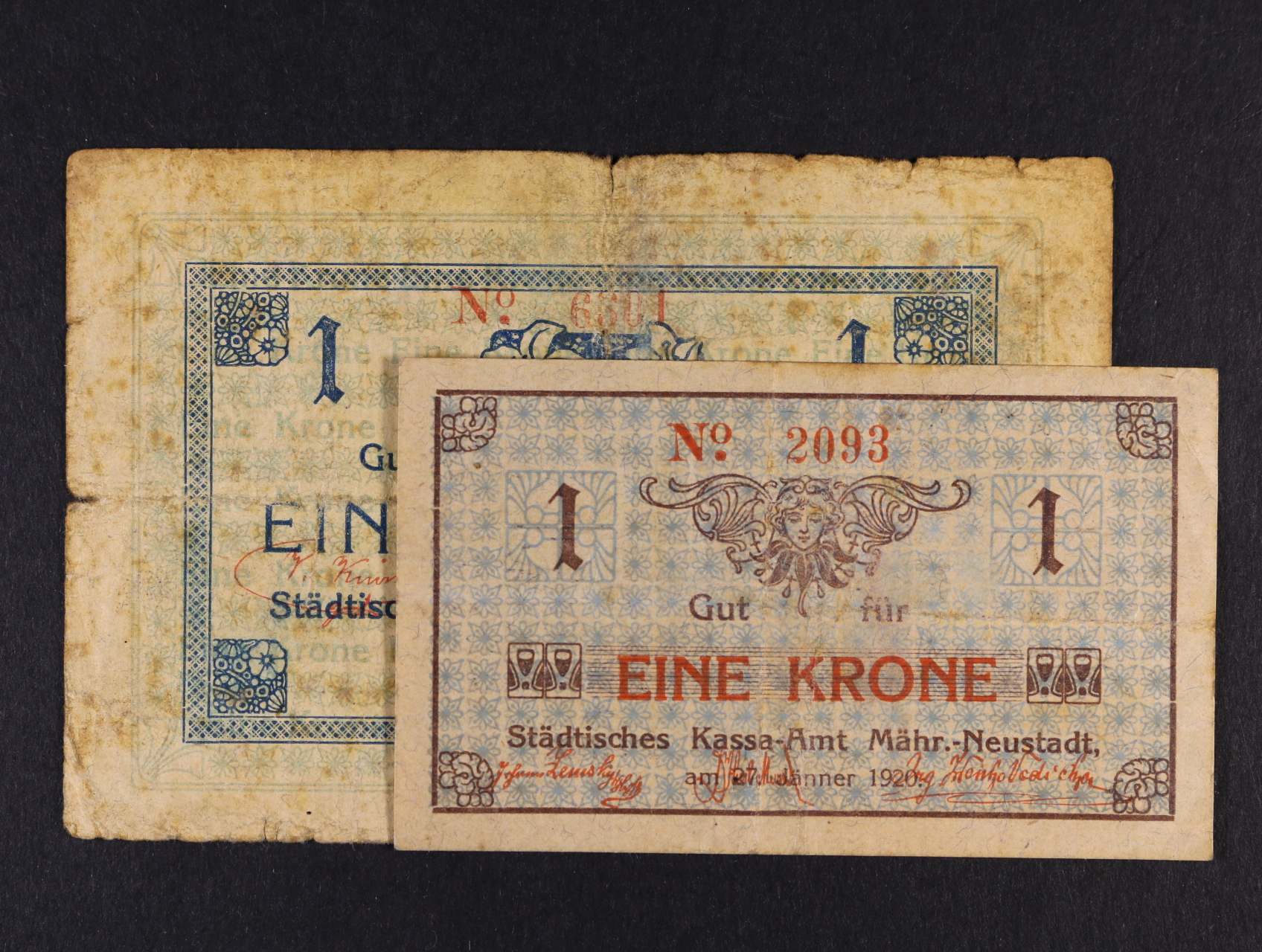 Mährisch Neustadt (Uničov) 1 K 1.9.1914 město, 1 K 27.1.1920 město, D.H. 119.1.1a, 2a