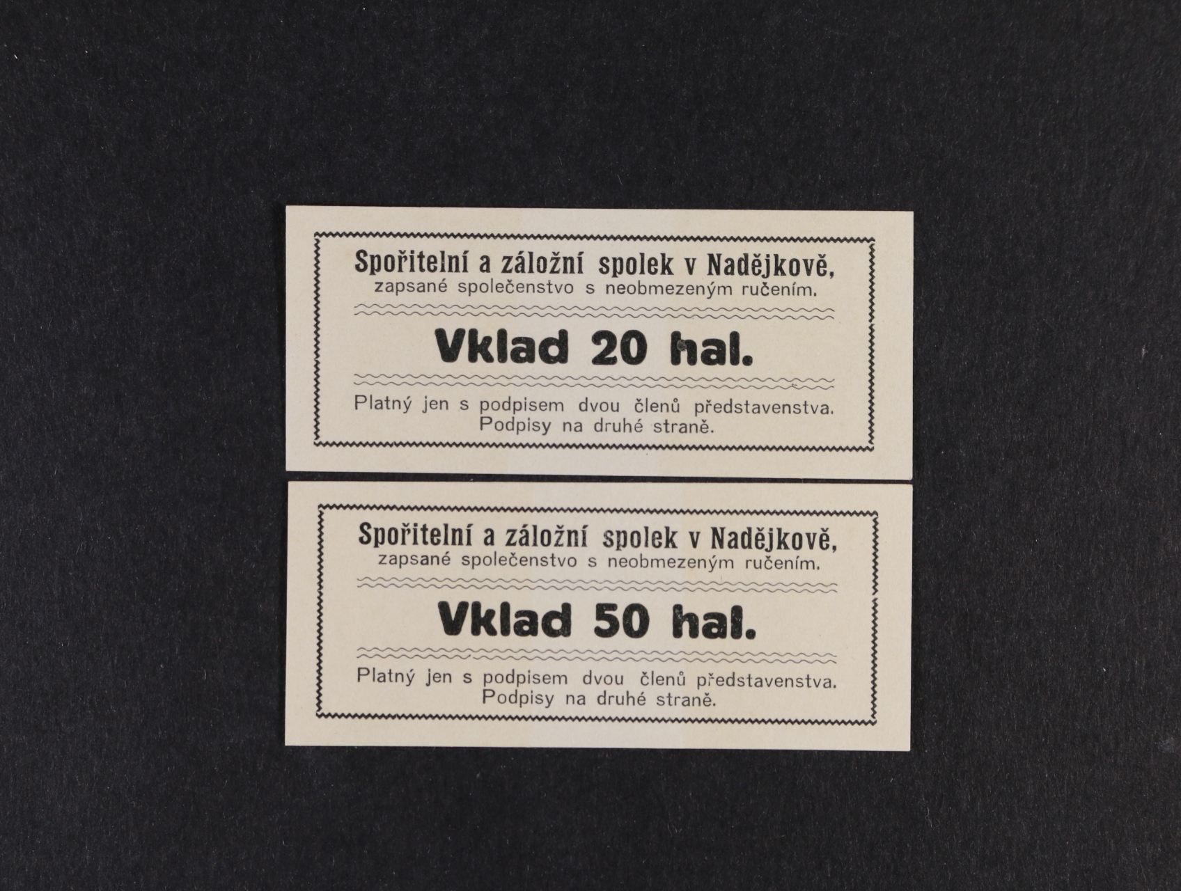Nadějkov, 20, 50 hal. b.d. Spoř. a zál. spolek, D.H. 134.1.1b, 2b
