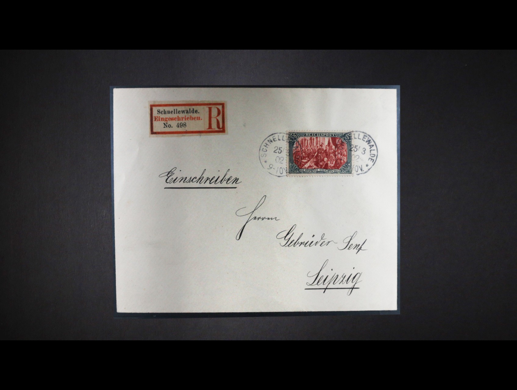 R-dopis do Lipska frank. zn. Mi. č. 66 5M REICHSPOST, pod. raz. SCHNELLWALDE 25.3.02, jednoznámková frankatura 4400 EUR