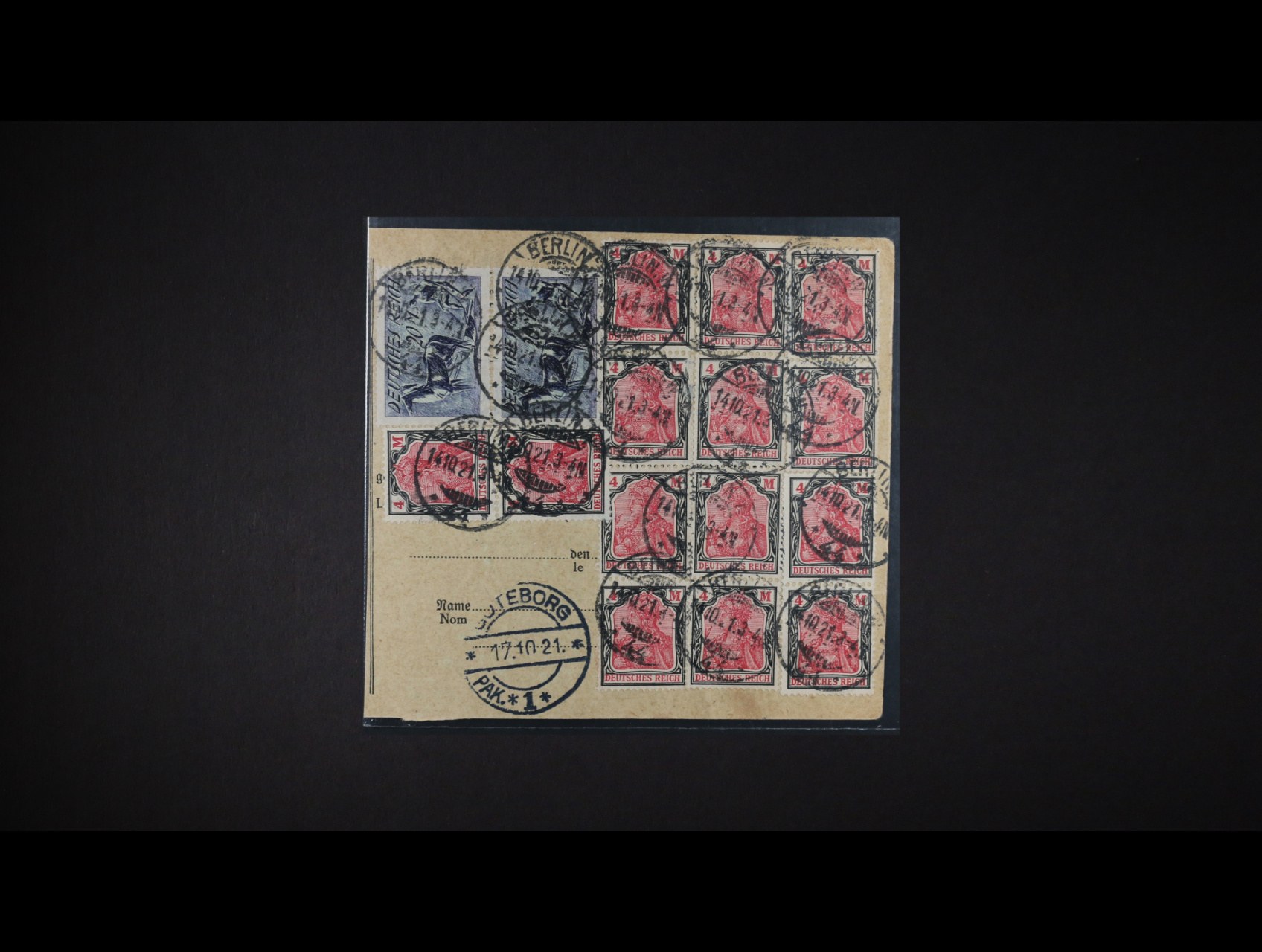 1921 průvodka z Berlína , EXPRESS do Goteborgu s pěknou inflační frankaturou, 3xMi.196 + 14xMi.153 (Germania 4RM!)
