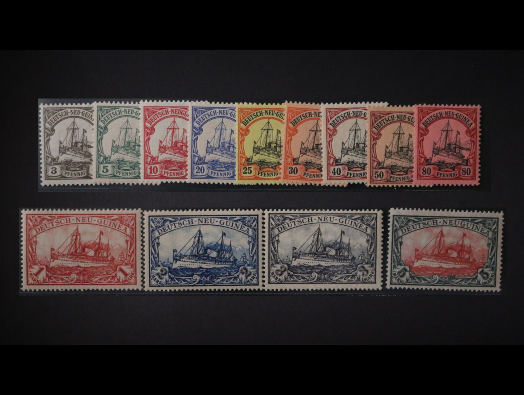 Deutsch N. Guinea 1900-1914, zn. Mi. č. 7-18, 23; „Lodě“ 3Pfg-5M