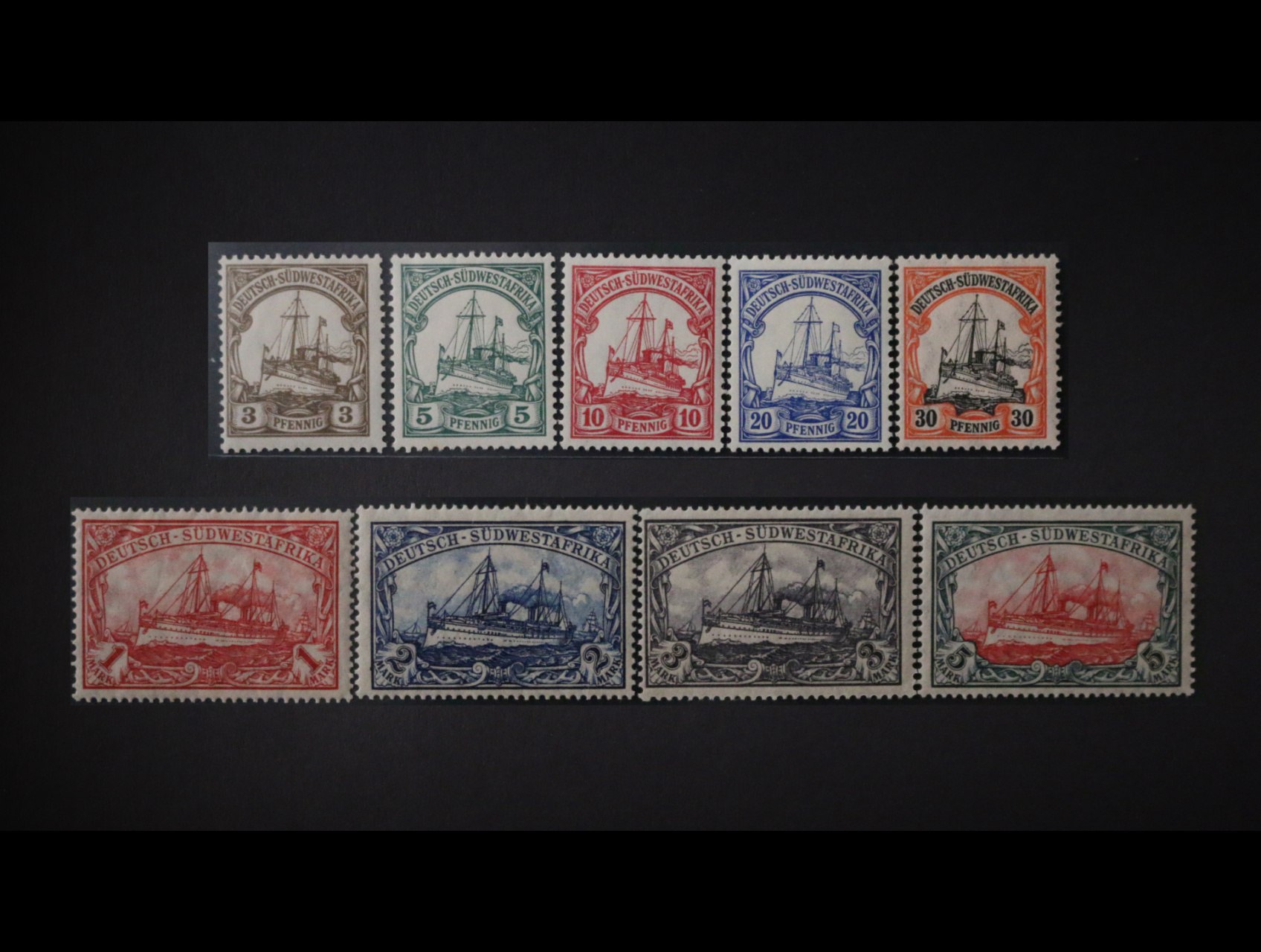 Deutsch SWA, 1906, zn. Mi. č. 24-32; „Lodě“ 3Pfg-5M