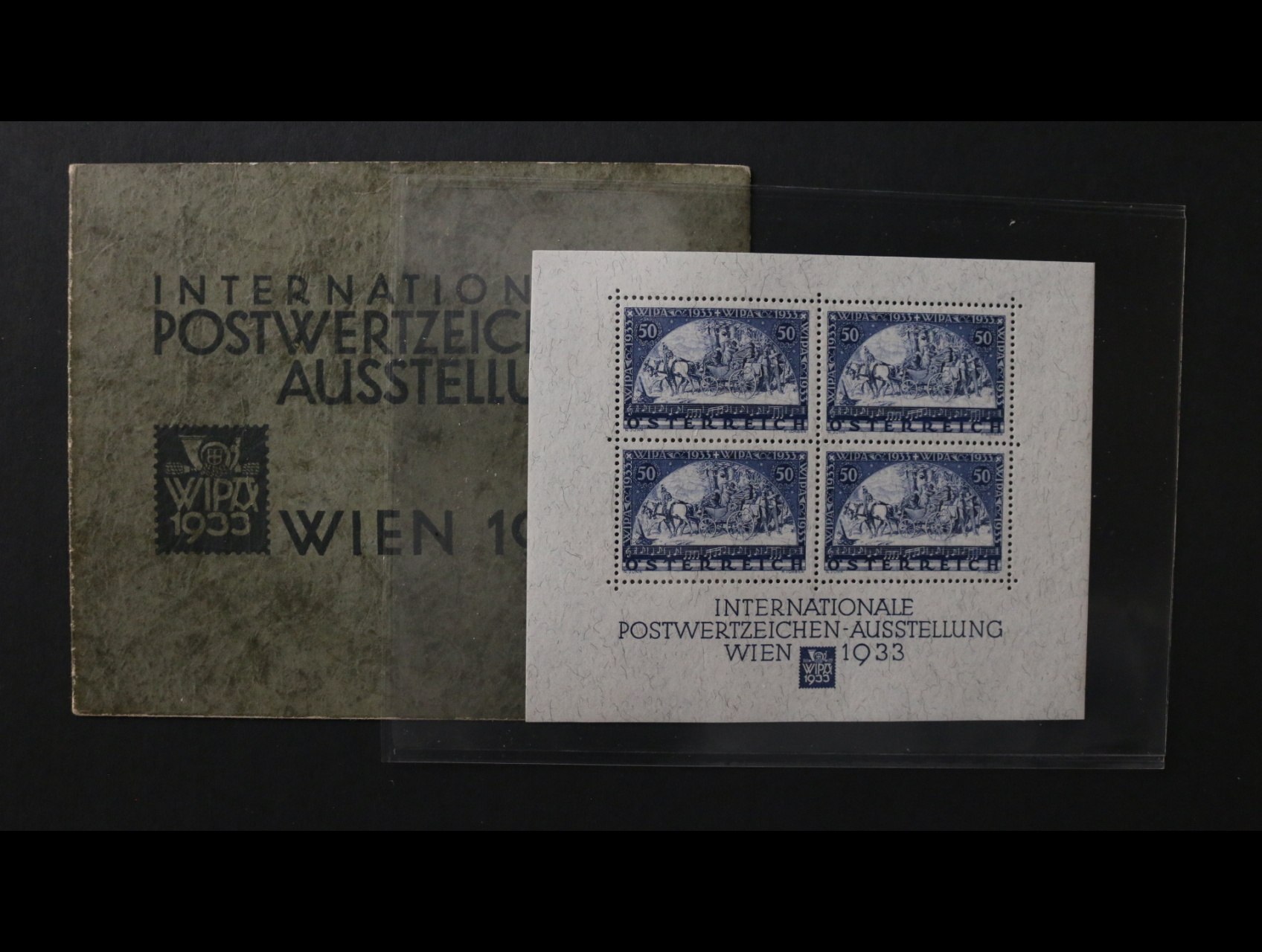 1129 sestava 11 ks "Merkur - Kleinbogen" WIPA 1933 (4 ks s různými výstavními raz.) 400